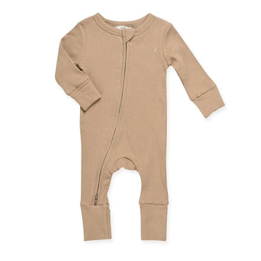 אוברול בצבע חום מבד עדין ומפנק עבור התינוק עשוי מבד כותנה אורגנית רכה ונושמת