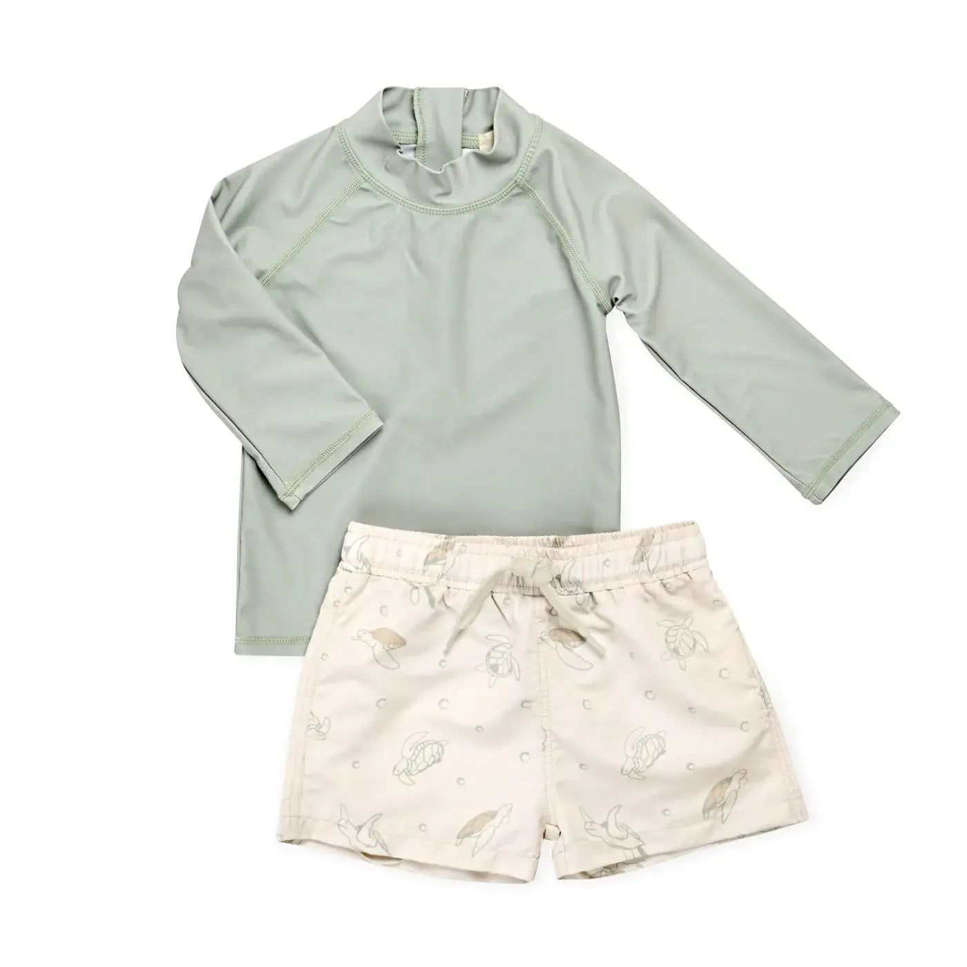 סט בגד ים עם הדפס צבי ים מתוק הכולל חולצה עם שרוול ארוך ומכנסון תואם סט ירקרק וקסום הוא מעניק הגנה מלאה מהשמש הודות לחומר UPF,86% פוליאסטר 14% אלסטין 100% ביטנה פוליאסטר