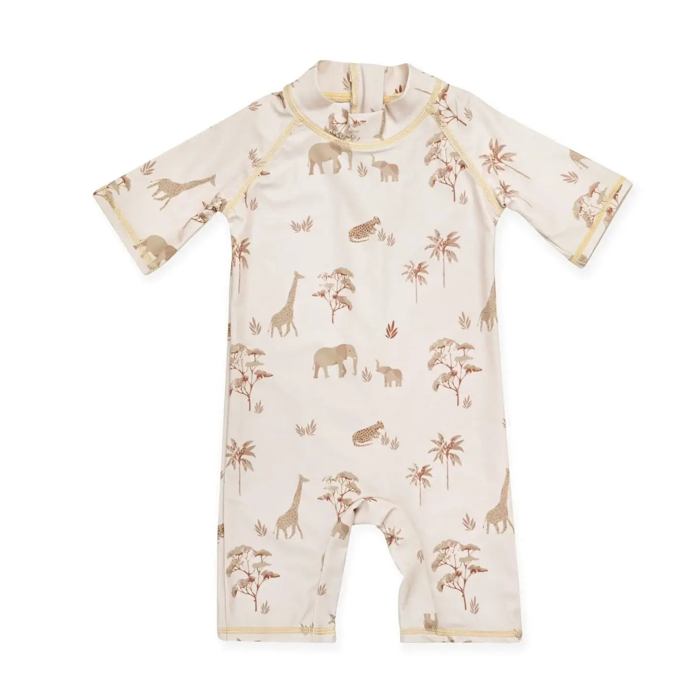 בגד ים אוברול עם הדפס חיות מתוק וקיצי בגוונים ומלטפים הוא מעניק הגנה מלאה מהשמש הודות לחומר UPF,86% פוליאסטר 14% אלסטין 100% ביטנה פוליאסטר