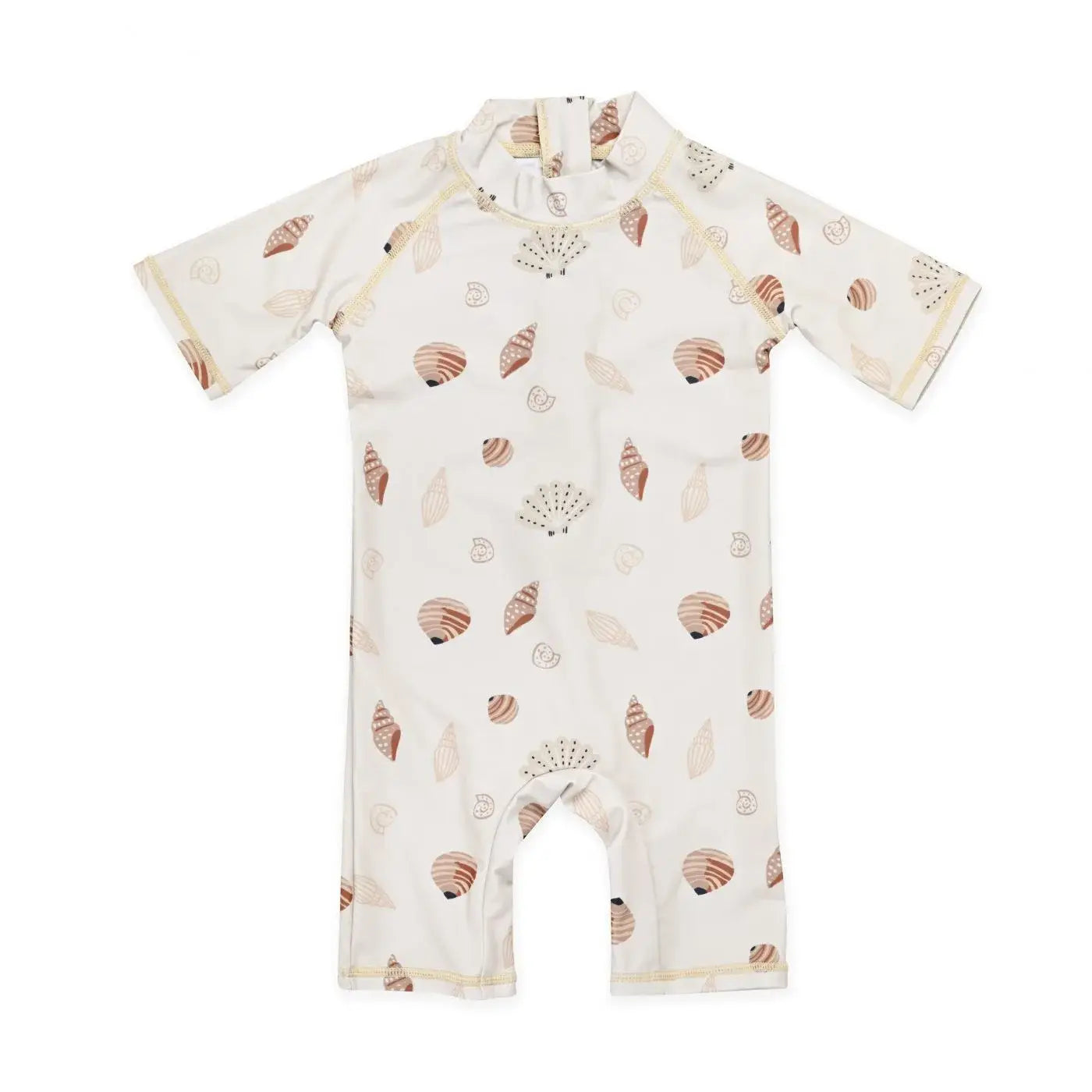 בגד ים אוברול עם הדפס צדפות מתוק וקיצי בגוונים ומלטפים הוא מעניק הגנה מלאה מהשמש הודות לחומר UPF,86% פוליאסטר 14% אלסטין 100% ביטנה פוליאסטר