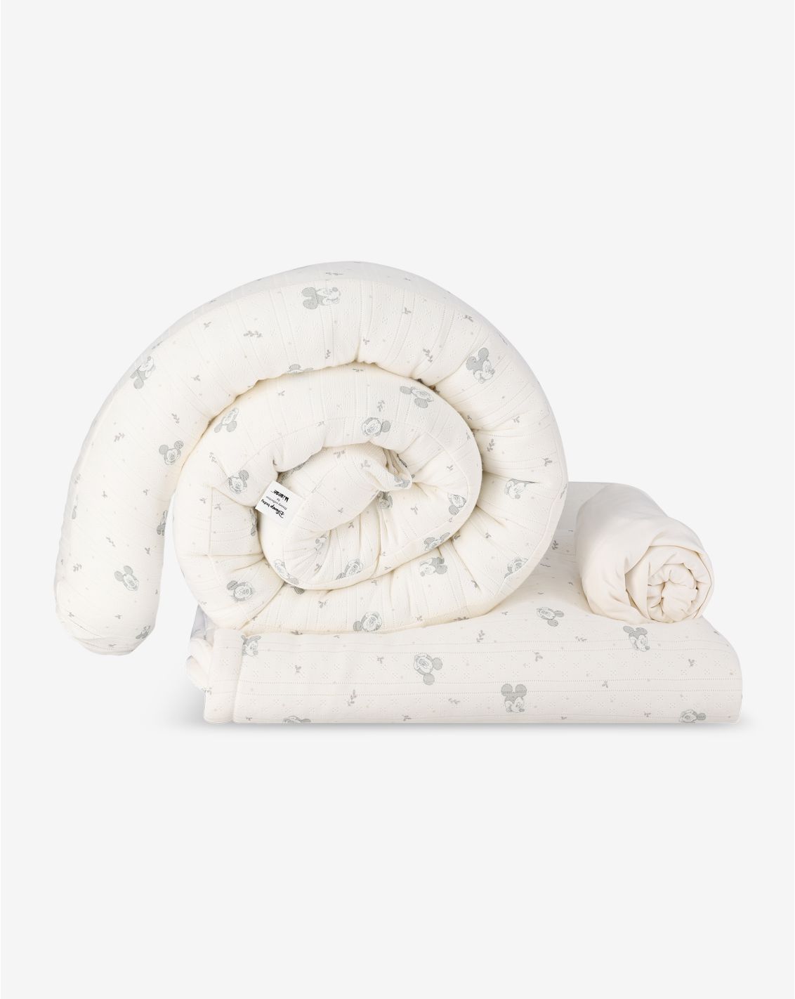 לקולקציית הפיג'מות המדהימה של דיסני, מצטרפים מצעים מפנקים, אשר ביחד מקיימים את התנאים המושלמים ללילה מלא חלומות מצויירים. הליין כולל סט מצעים למיטת תינוק ולעריסה בעיצוב מתוק במיוחד. המצעים עשויים בד פויינטל רך ונעים, בהדפסים של מיקי ומיני החברים האהובים. מכיל : נחשוש מבד פויינטל מודפס 100% כותנה, באורך 170ס"מ. שמיכת חורף עבה עם מילוי בגודל 80X80 ס"מ, עשוייה בד פויינטל מודפס, 100% כותנה. סדין לעריסה 60X90X9 ס"מ, עשוי בד ג'רזי 100% כותנה.
