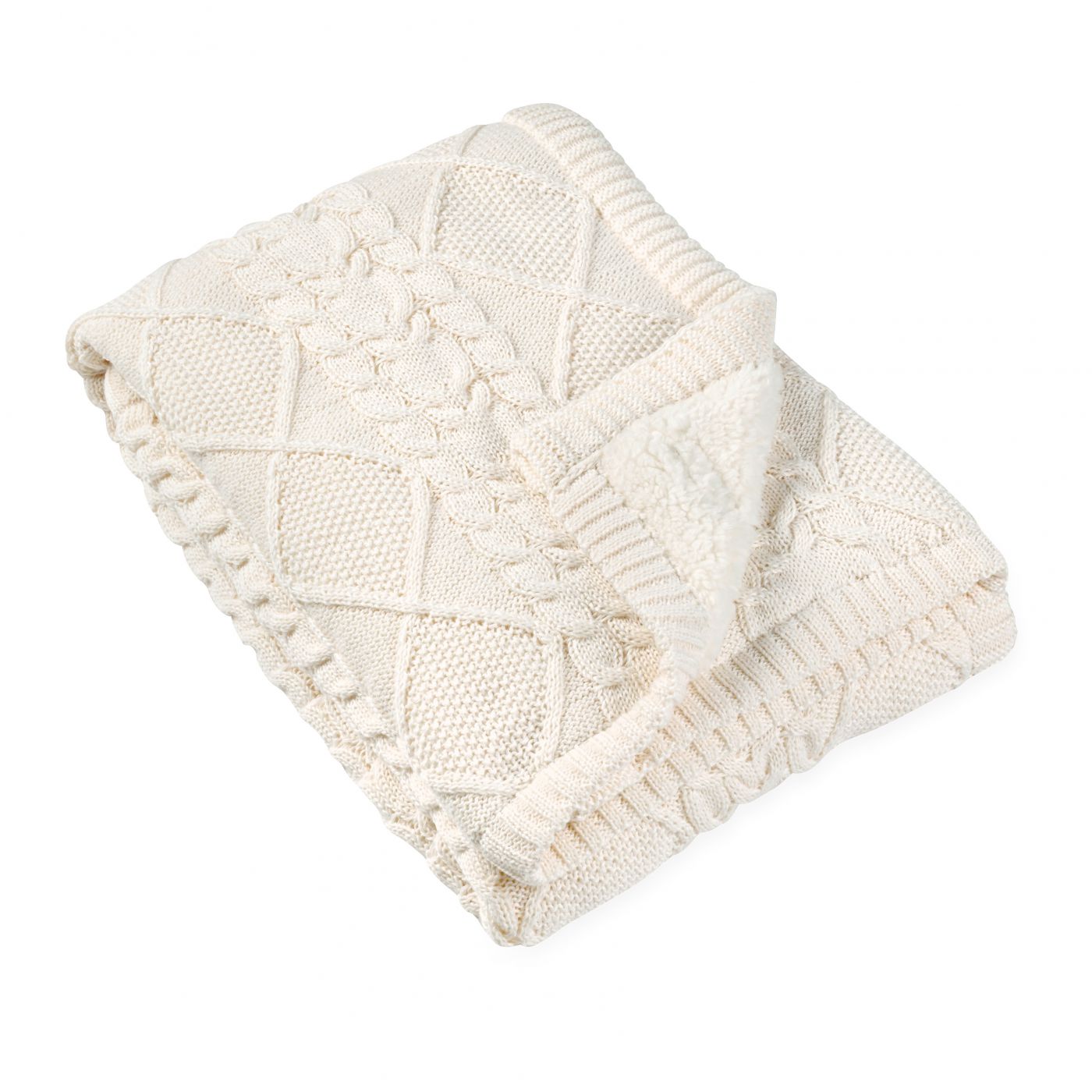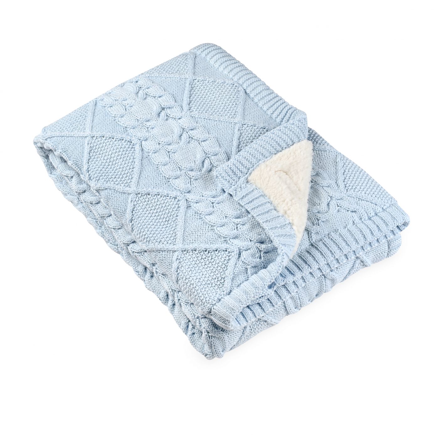 שמיכה סרוגה דו צדדית, מצד אחד בד סרוג ומהצד השני בד שרפא מפנק עבור התינוק. בגודל 75/100 ס”מ %100 פוליאסטר