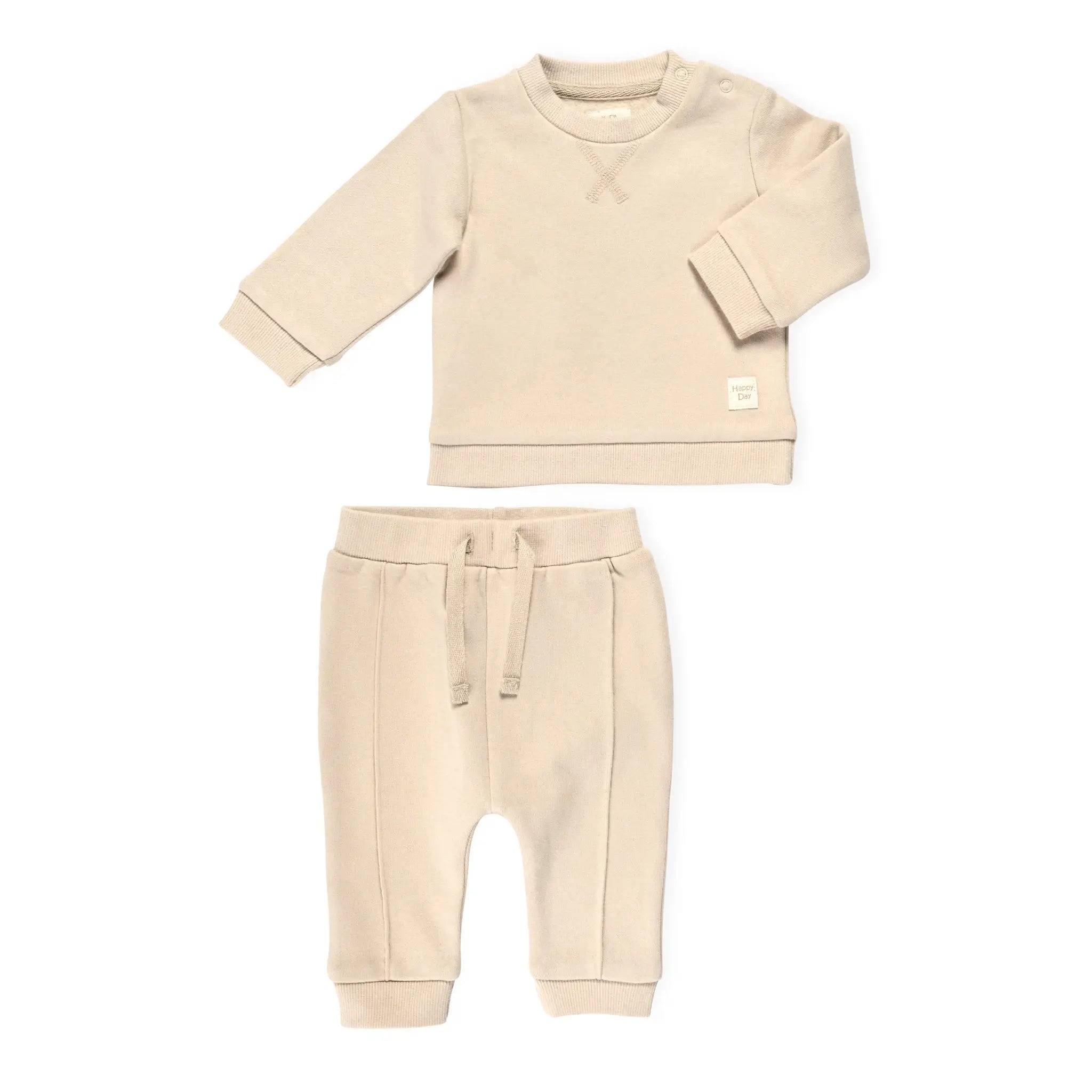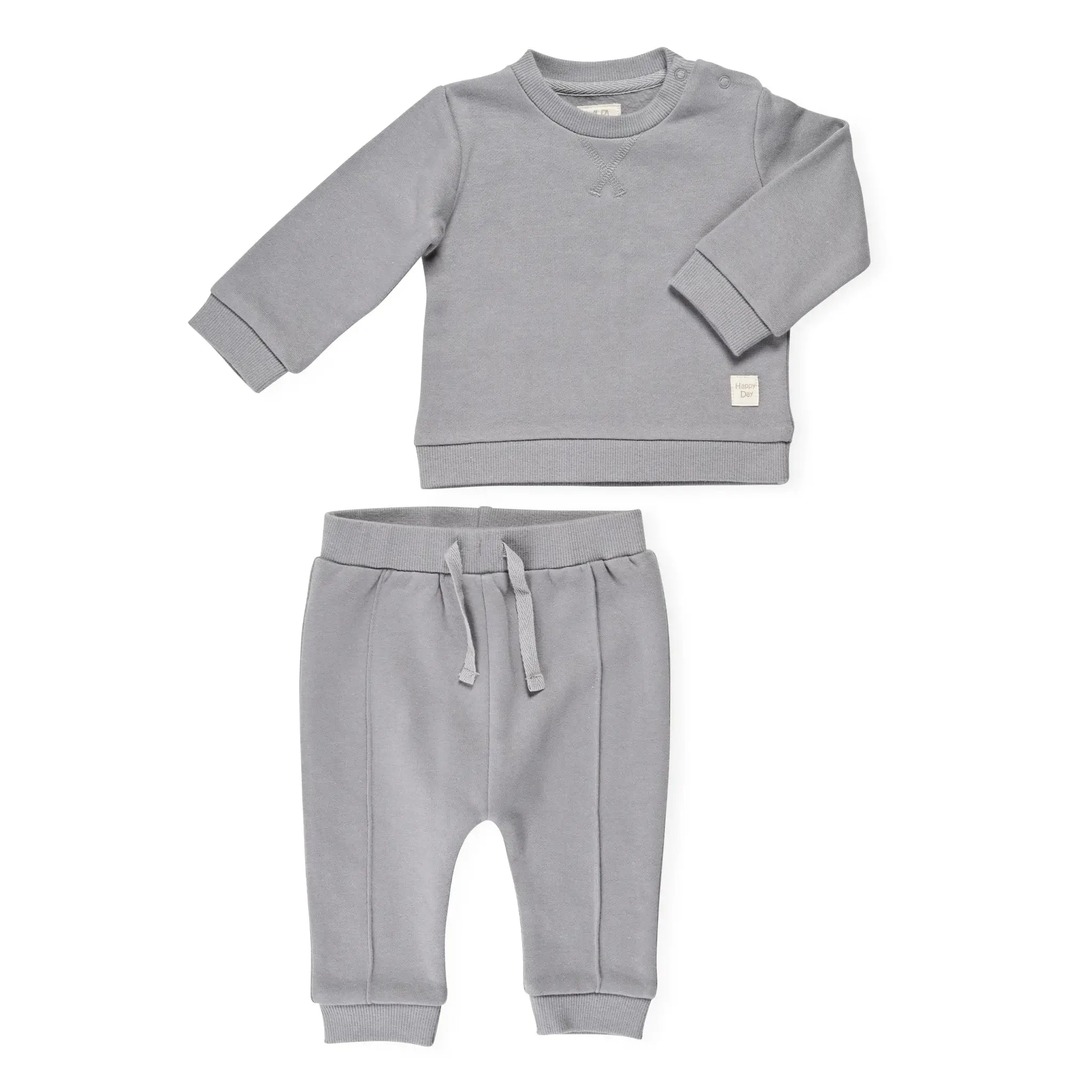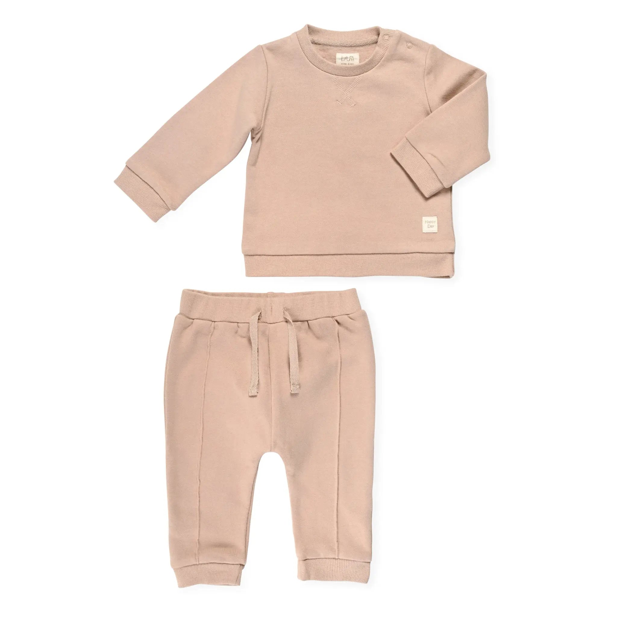 חליפת גן רכה ונעימה מורכבת מסווטשירט ומכנסיים רכים עם סיומת גומי לתוספת נוחות.