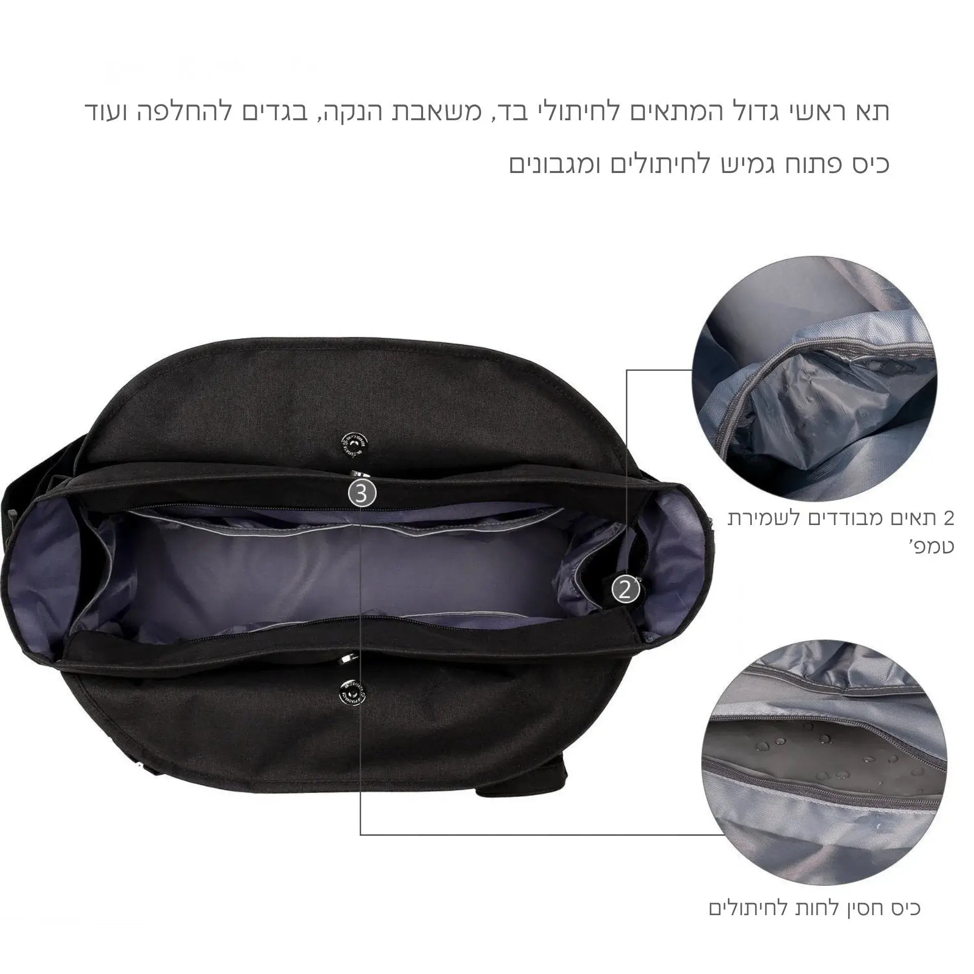 תיק להחתלה ולעגלה בעל קיבולת גדולה.