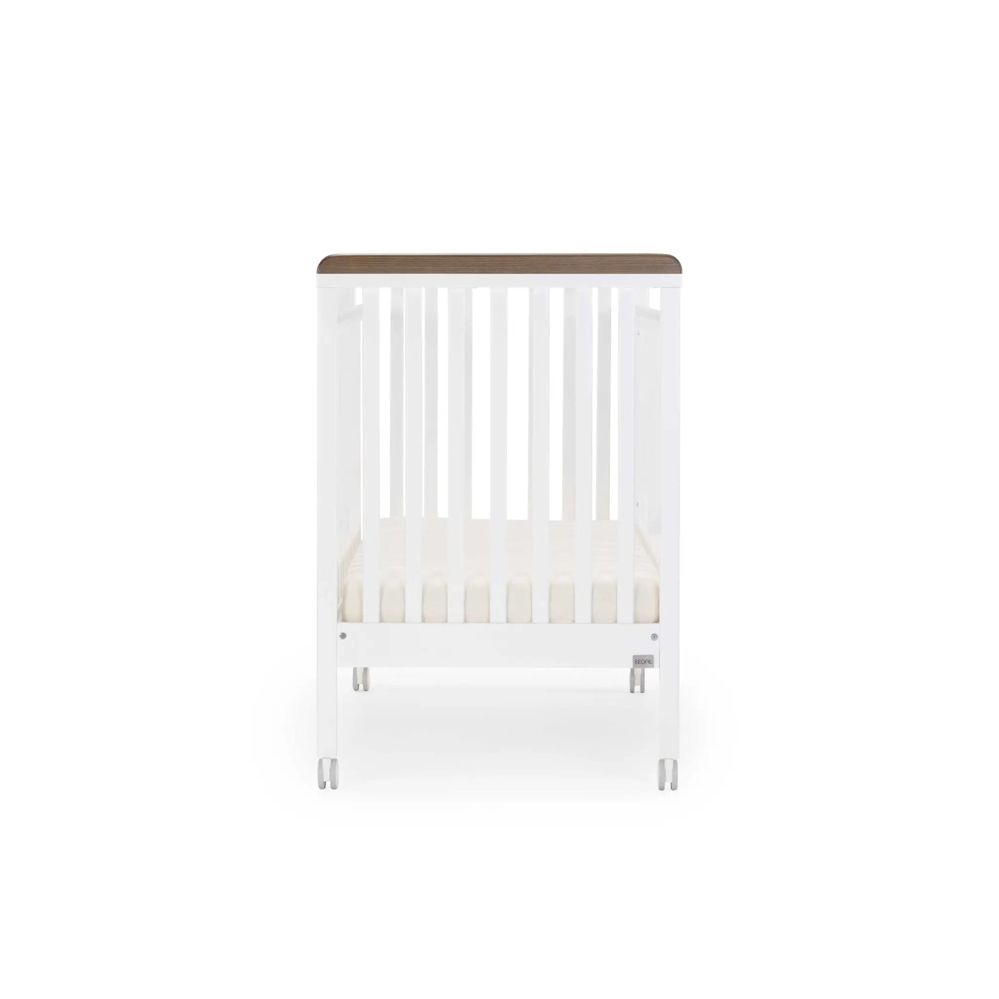 מיטה תינוק - סגל דגם קואלה ג'וי לבן ואגוז - גלגלים שקטים