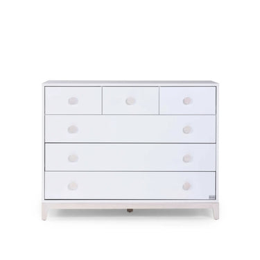 שידת תינוק אלגנטית עם 6 מגירות מרווחות לנוחות אחסון מקסימלית, ברוחב 120 ס"מ.