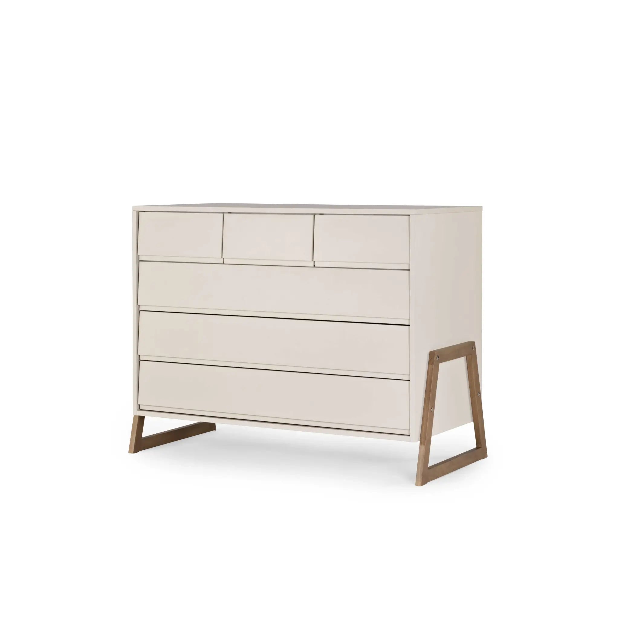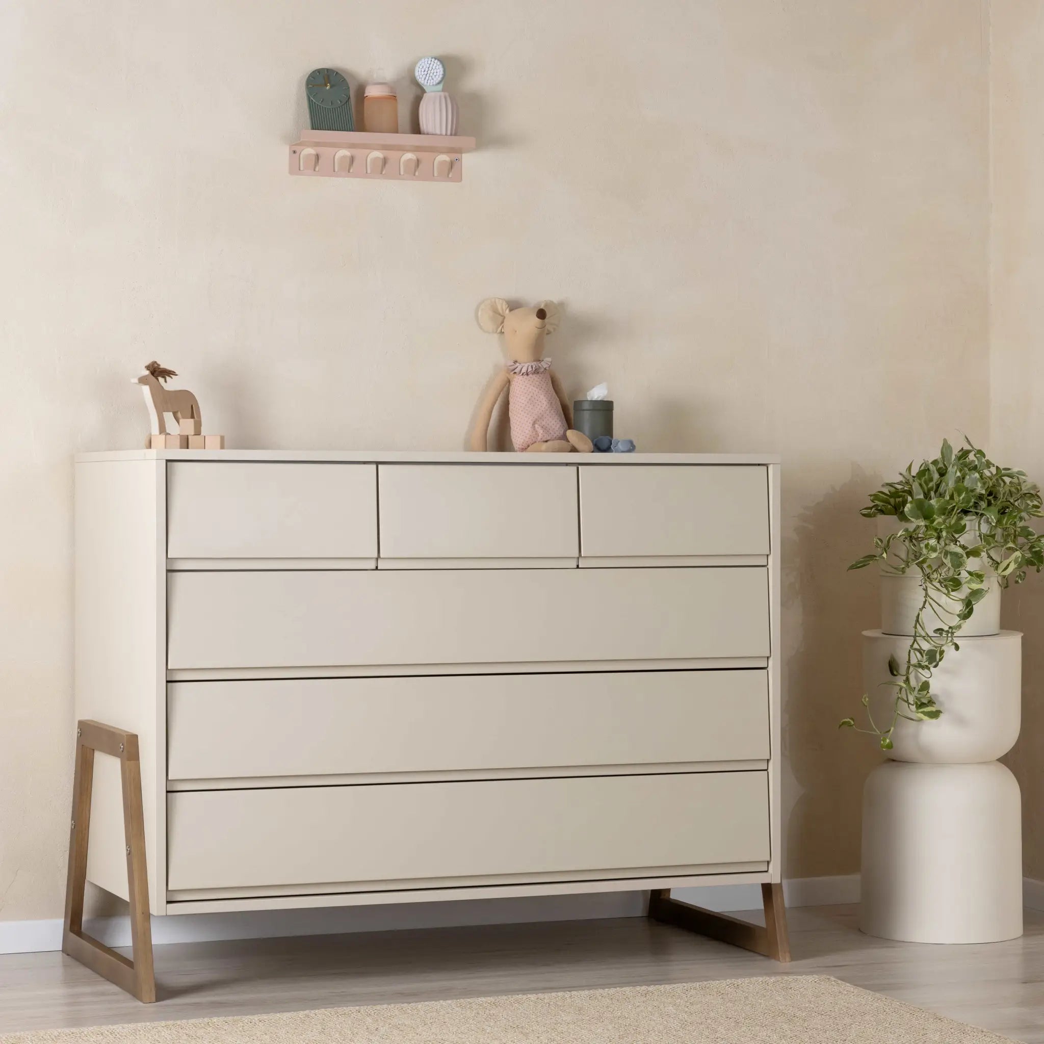 שידה לתינוק בעיצוב מודרני על־זמני, ברוחב 120 ס"מ, עשויה MDF מלא ואיכותי לחוזק ועמידות לשנים רבות.