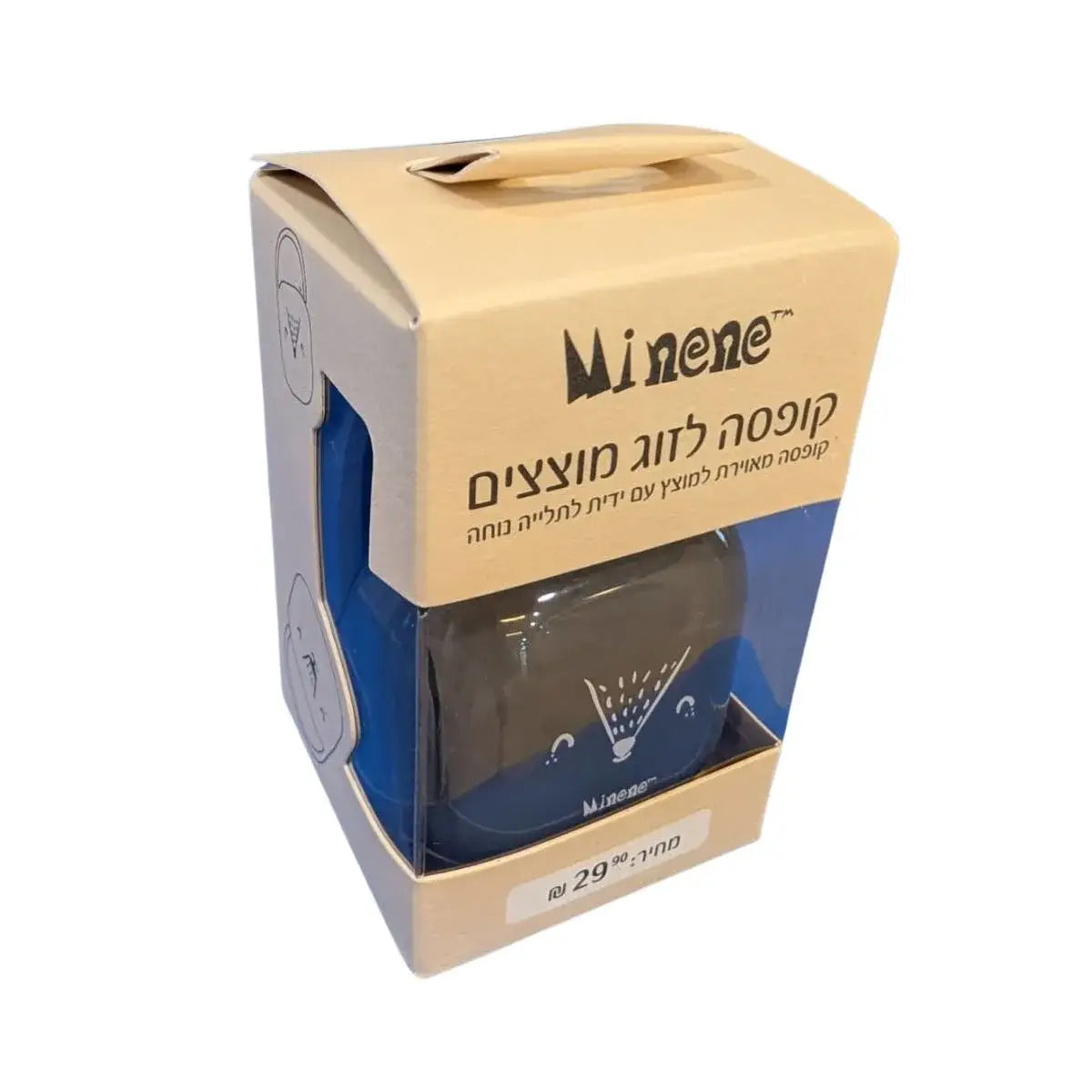 המארז מכיל מכנסיים וחולצה בצבע כחול וקופסא לאיחסון מוצצים.