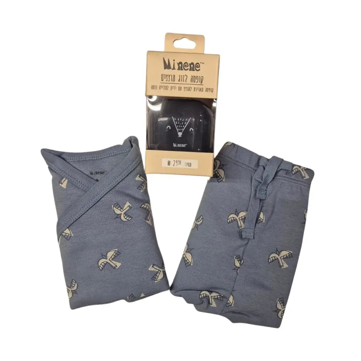 סט מיננה מכנסיים וחולצה בנים + קופסא לזוג מוצצים