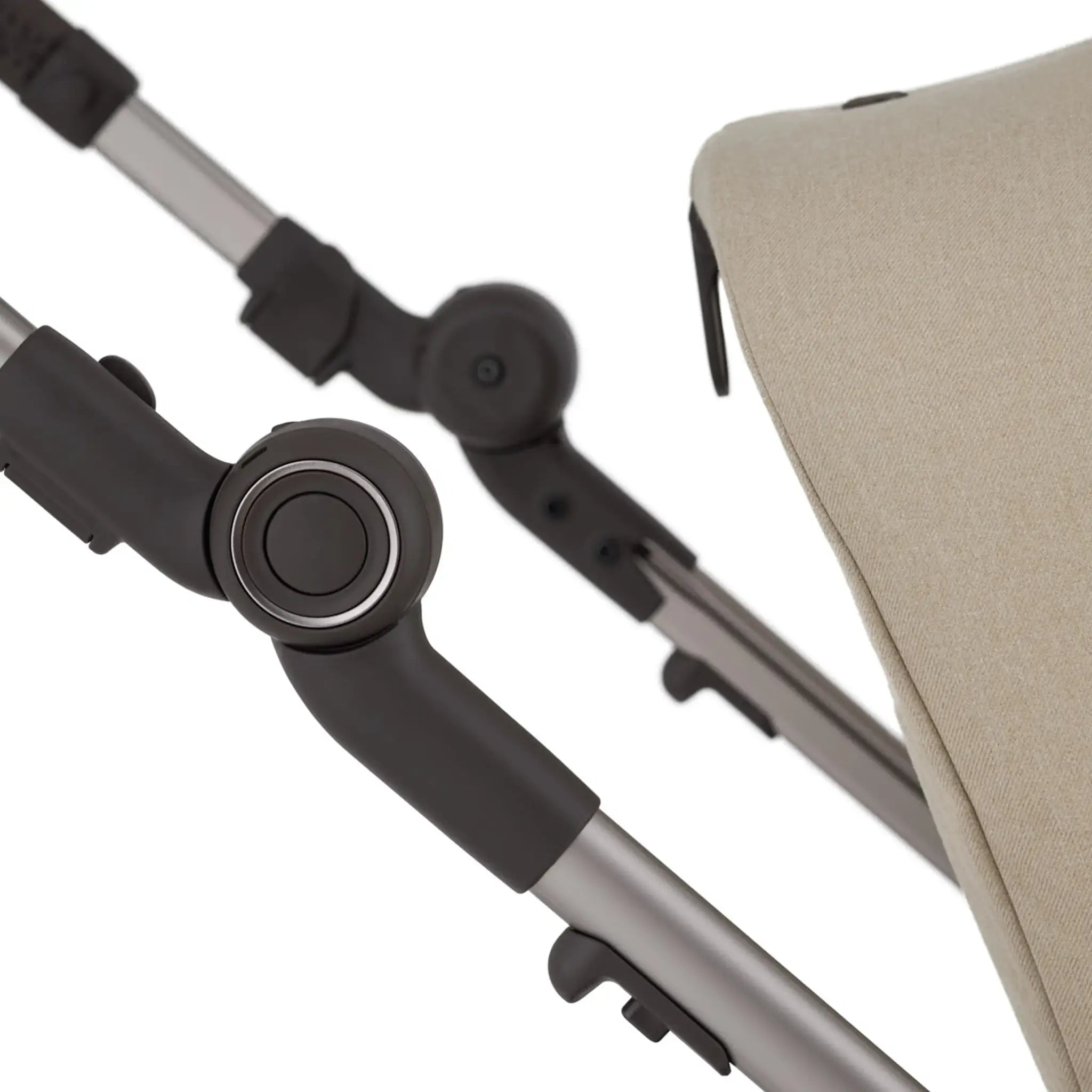 בכמה לחיצות בלבד, ניתן להפוך את IQ 2 ב-1 לעגלת ילדים קלה, ללא צורך בכלים! פשוט מצמצמים את המסגרת ומחברים את המרכב הרך של העגלה – זה כל כך פשוט.