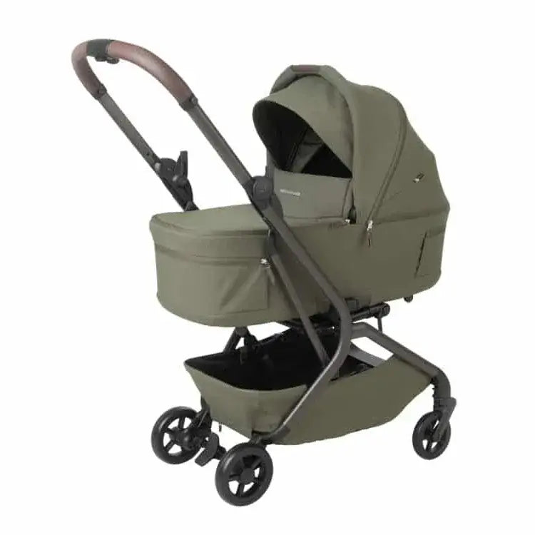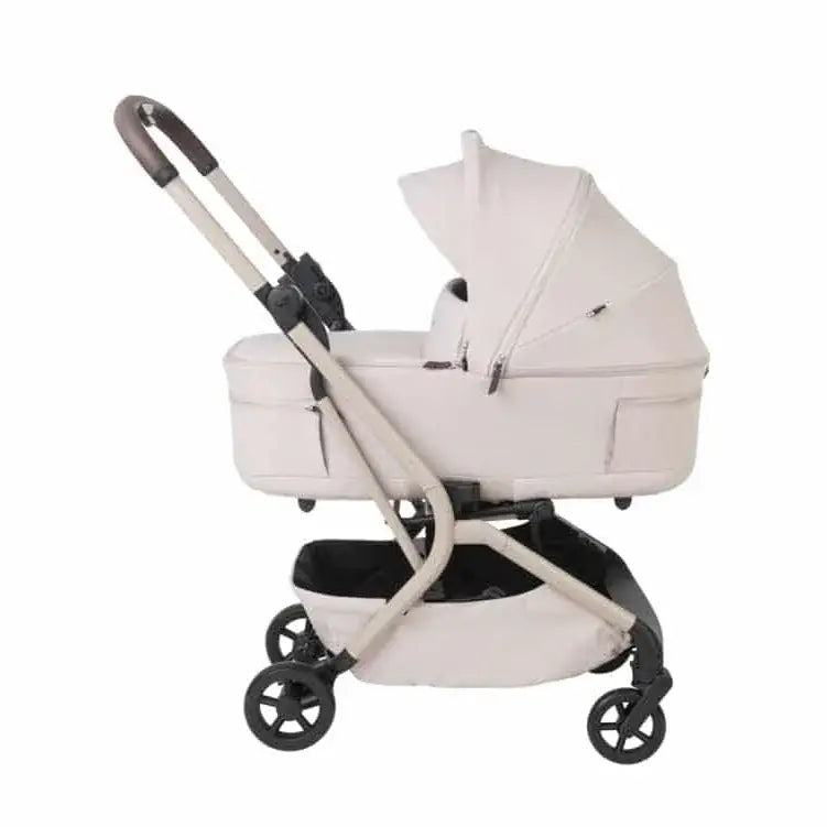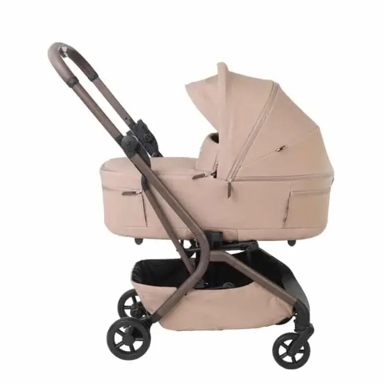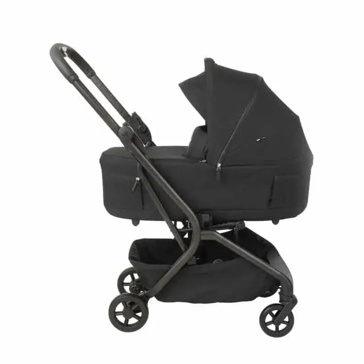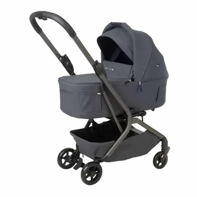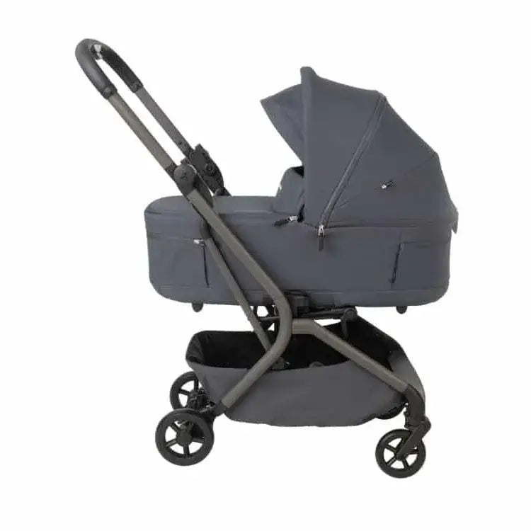 עגלה קומפקטית עם סל שכיבה שמתקפל לשימוש קל ונוח ברכב או ברכבת או במטוס.
