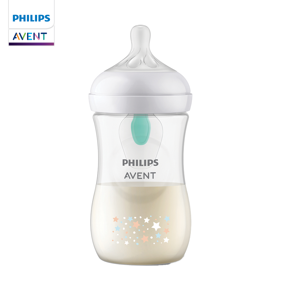 בקבוק נטורל עם פטמת התגובה הטבעית, כולל שסתום איירונט להפחתת קוליק, גזים וריפלוקס.