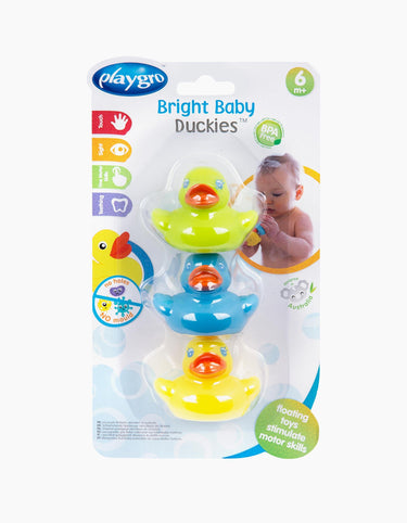 ארבעת הברווזונים הצפים הרכים והמקסימים של Playgro אטומים בצורה היגיינית למניעת התפתחות עובש בפנים ובטוחים ללעיסה של התינוק. בצבעים בהירים לגירוי ויזואלי ובגודל מושלם לידיים קטנות, הם מביאים כיף ודמיון לזמן האמבטיה ולמשחק במים.