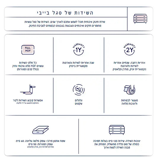 חיזוק משולש בגב השידה מבטיח עמידות לשנים רבות.