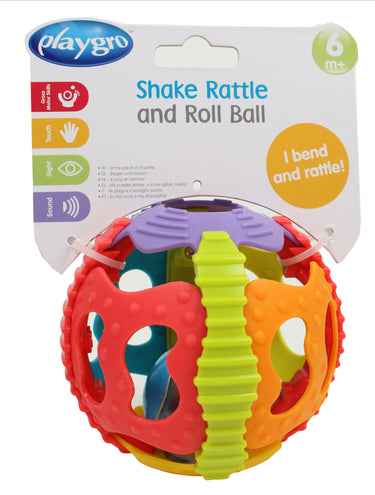 כדור הרעשן והגלגול מציע מגוון מרקמים עם משטחים רכים וצבעים עזים. הכדור הצבעוני יכול להתכופף בעוד שהכדור הקטן שבפנים מרעיש כשמטלטלים אותו, מה שמגרה את התפתחות השמיעה של התינוק. ניתן לתרגל מיומנויות מוטוריות גסה על ידי ניעור ואחיזה של הכדור.