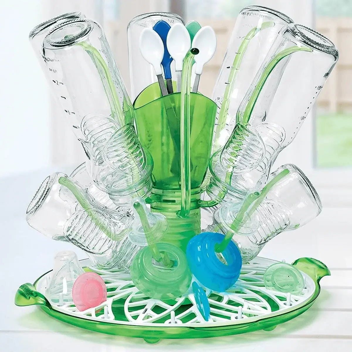 כולל מעמדים גבוהים ונמוכים לייבוש בקבוקים בגדלים שונים, מגש ניקוז מחורר שימושי לאבזרים קטנים, ומחזיק עד 12 בקבוקי תינוקות.