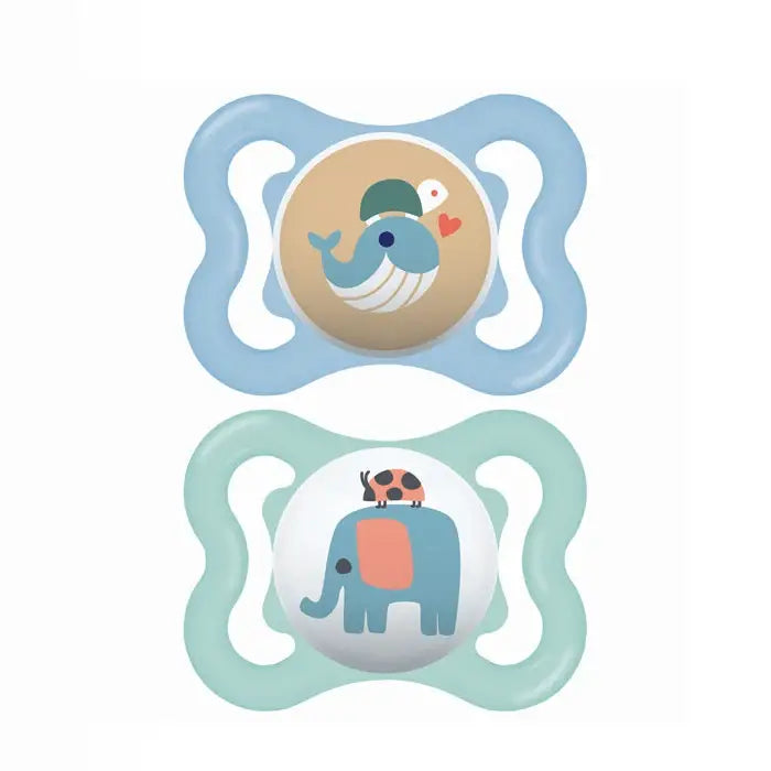 מעוצבים במיוחד לתינוקות בגיל 0-6 חודשים. המוצצים בעלי פטמה אורתודונטית סימטרית שמסייעת בהתפתחות תקינה של השיניים והחניכיים. הם עשויים סיליקון איכותי ועמיד, בטוחים לשימוש.