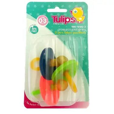 שלישיית מוצצי גומי טבעי אשר עשויים מלטקס טבעי ועמיד בטיחותיים לשימוש ומרגיעים את התינוק. המוצצים אינן מכילים ביספנול A