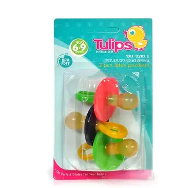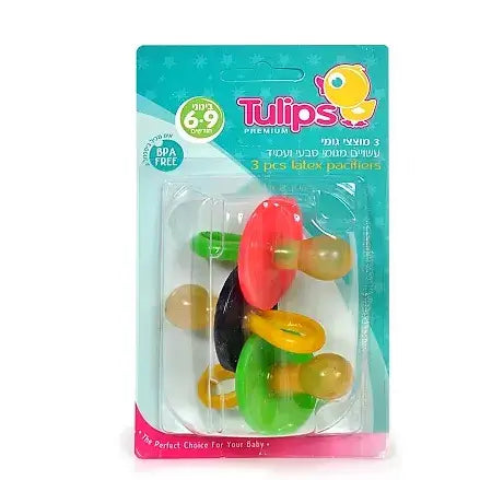 מוצצי הגומי הטבעי של טוליפס עשויים מלטקס טבעי ועמיד, ללא ביספנול A, ומספקים פתרון בטיחותי לשימוש. המוצצים עוזרים להרגיע את הילד ומספקים לו חוויית שימוש נוחה ובטוחה.
