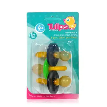 שלישיית מוצצי גומי טבעי אשר עשויים מלטקס טבעי ועמיד בטיחותיים לשימוש ומרגיעים את התינוק. המוצצים אינן מכילים ביספנול A.