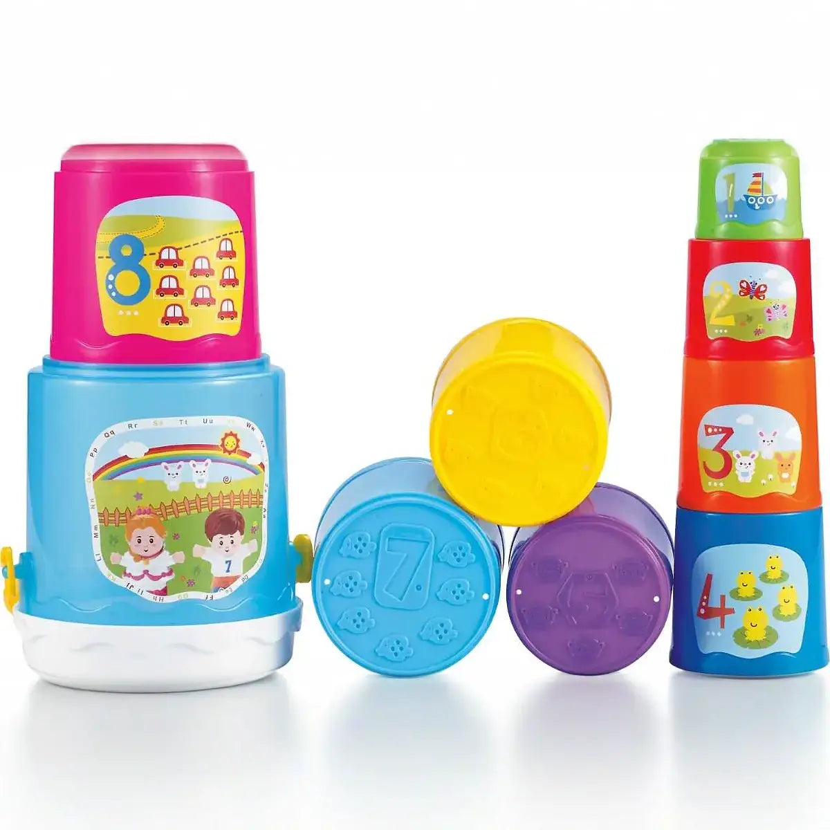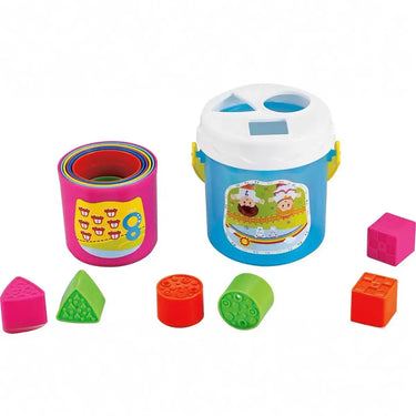 המשחק כולל שני משחקים: שמונה כוסות צבעוניות עם מספרים ודלי עם צורות הנדסיות.