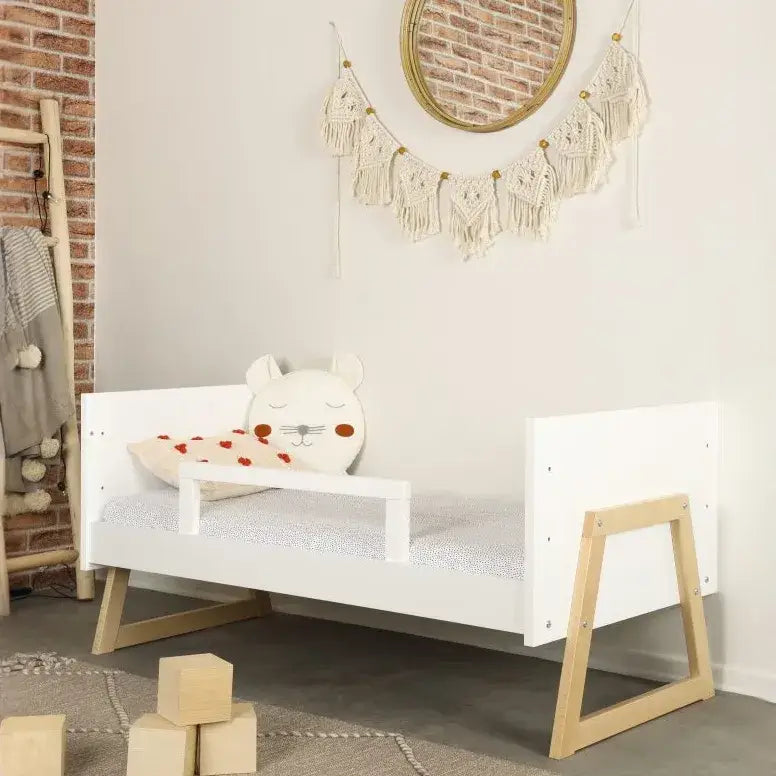 מעקה ובסיסים שהופכים את המיטה ממיטת תינוק למיטת מעבר