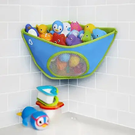 עשוי מחומר עמיד בפני טחב ומספק פתרון אחסון מעולה לצעצועי אמבטיה, סנאים, עפרונות ועוד. חזית הרשת מאפשרת לאתר במהירות את הצעצועים האהובים על ילדך, בעוד שהתחתית הרשתית שומרת על הצעצועים נקיים ויבשים לאחר השימוש. מיכל הצעצועים הנוח מתחבר לפינת הקיר באמצעות כוסות יניקה, שומר על הכל מאורגן ומרחיק את הצעצועים מהמרצפות, כך שלא תיתקל בהם שוב על הרצפה אחרי השפריץ הקטן של ילדך.