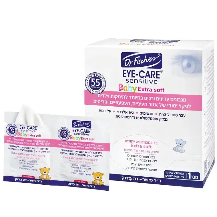 מגבונים עדינים ורכים במיוחד לתינוקות וילדים לניקוי יסודי של אזור העיניים, העפעפיים והריסים