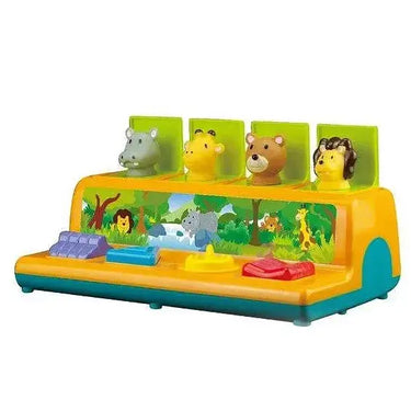 אתגר מוטורי לאצבעות כף ידם של הפעוטות, לכשיצליחו… יתוגמלו בקפיצה מפתיעה של בעל חיים מתוך התיבה.