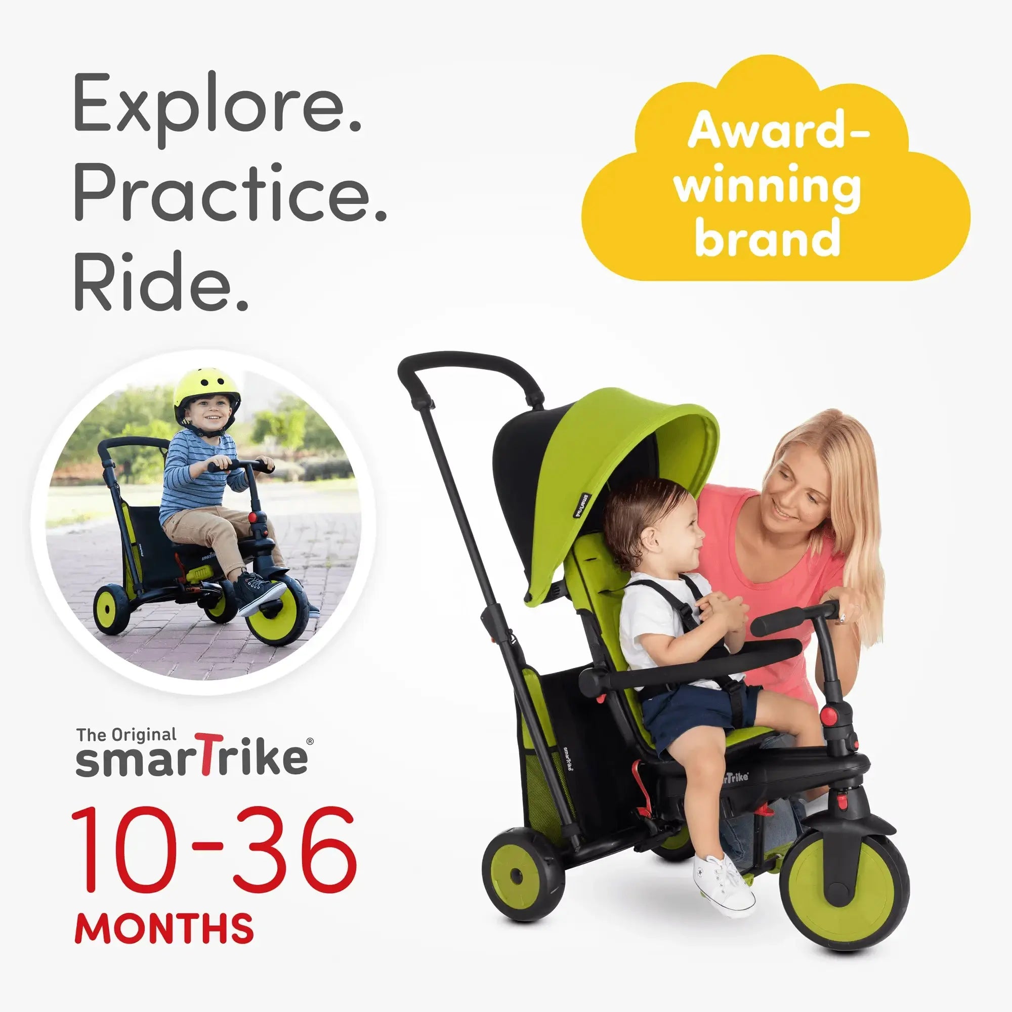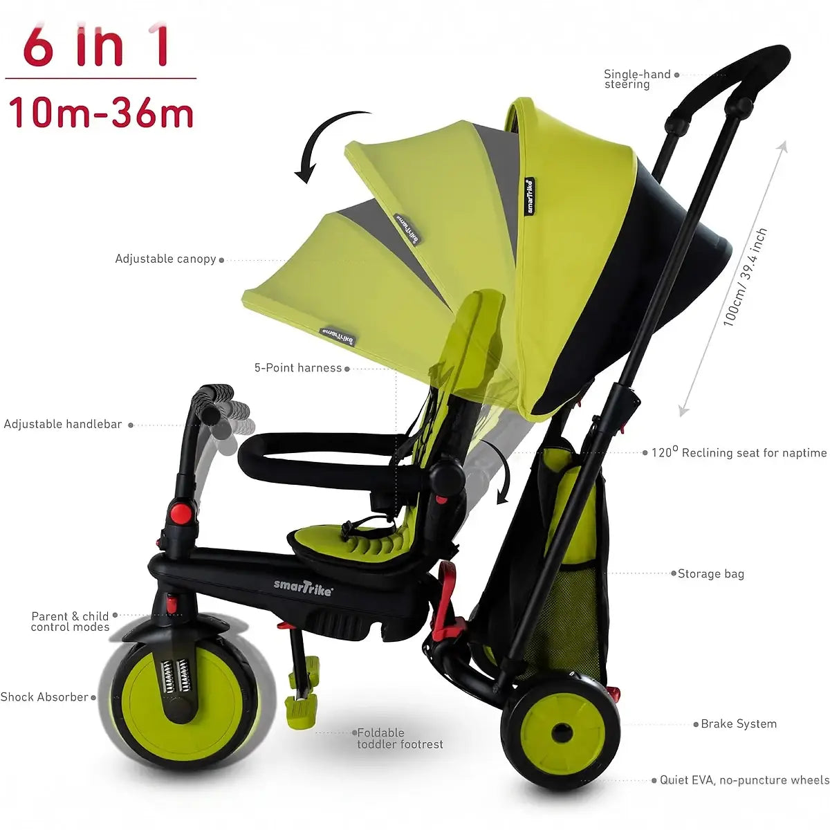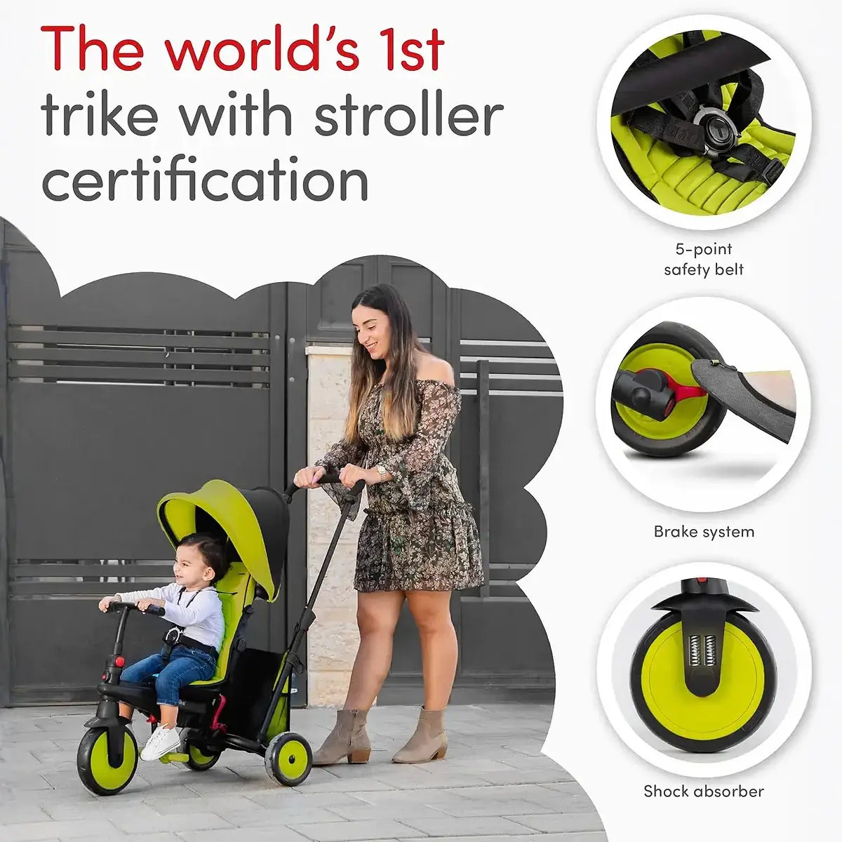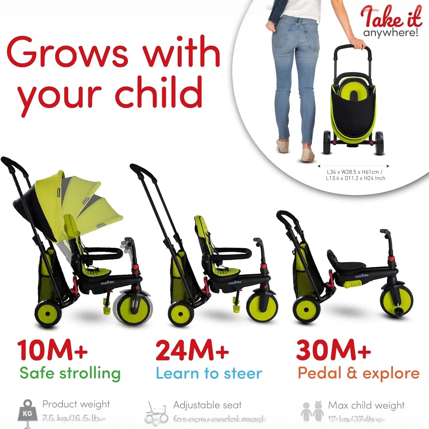 STR™ 3 הוא תלת אופן סמארט טרייק מתקפל 6 ב-1 עם תו תקן טיולון. הוא מעוצב כך שיגדל עם התינוק שלכם ב-6 שלבים לאורך גילאי 10-36 חודשים, והוא מתקפל באופן מלא וקומפקטי כך שממש קל לקחת אותו לטיולים.