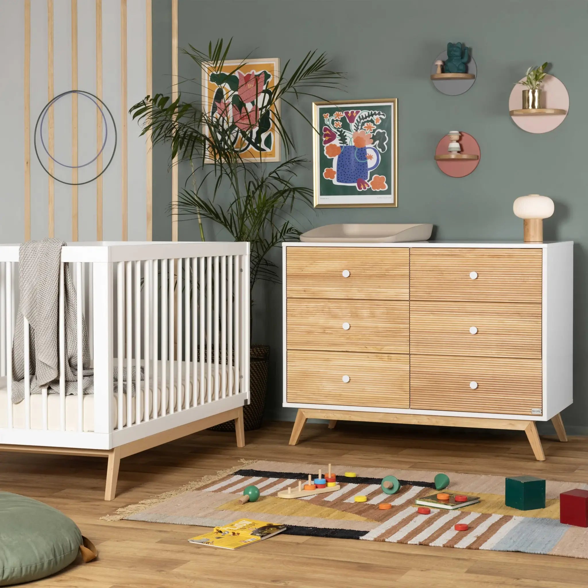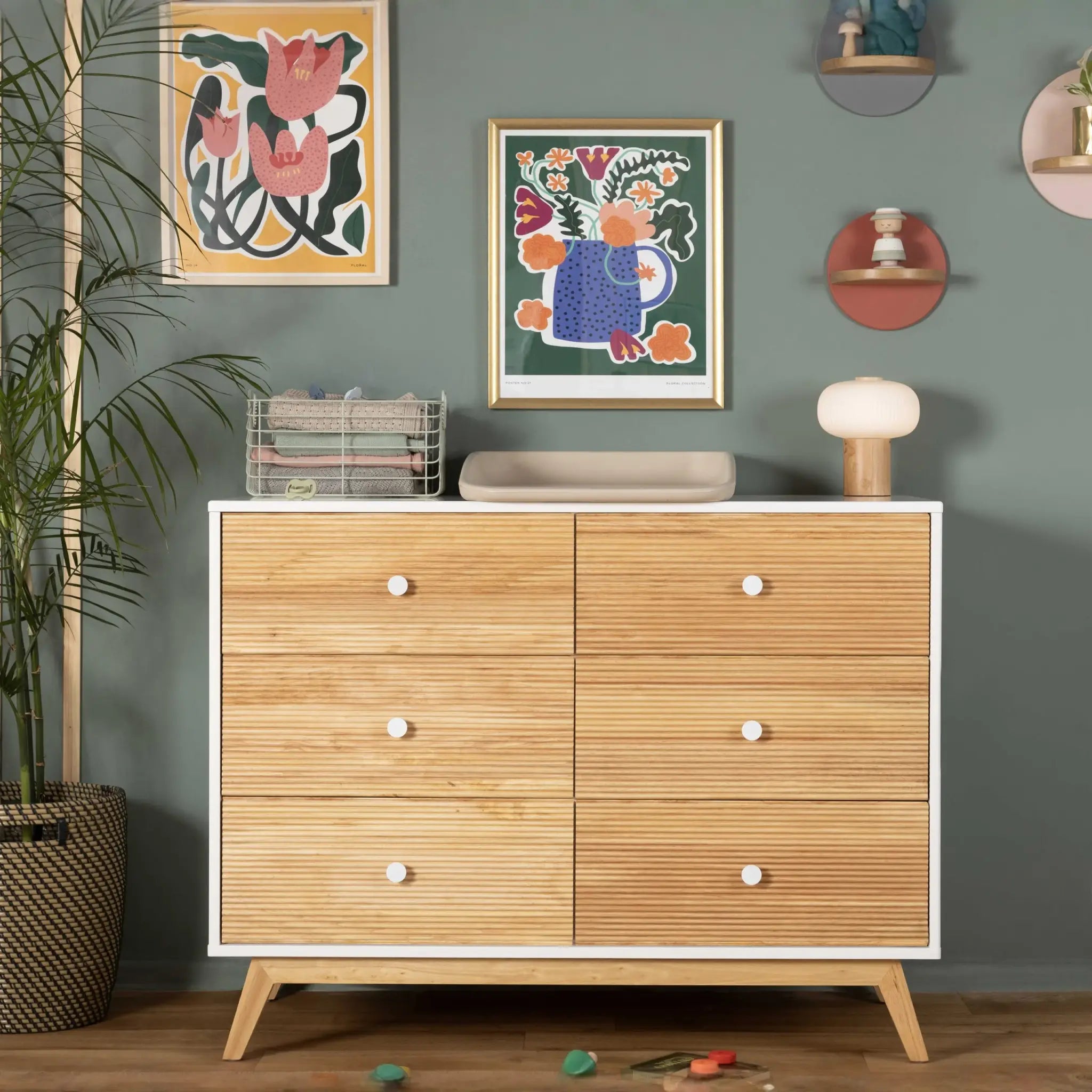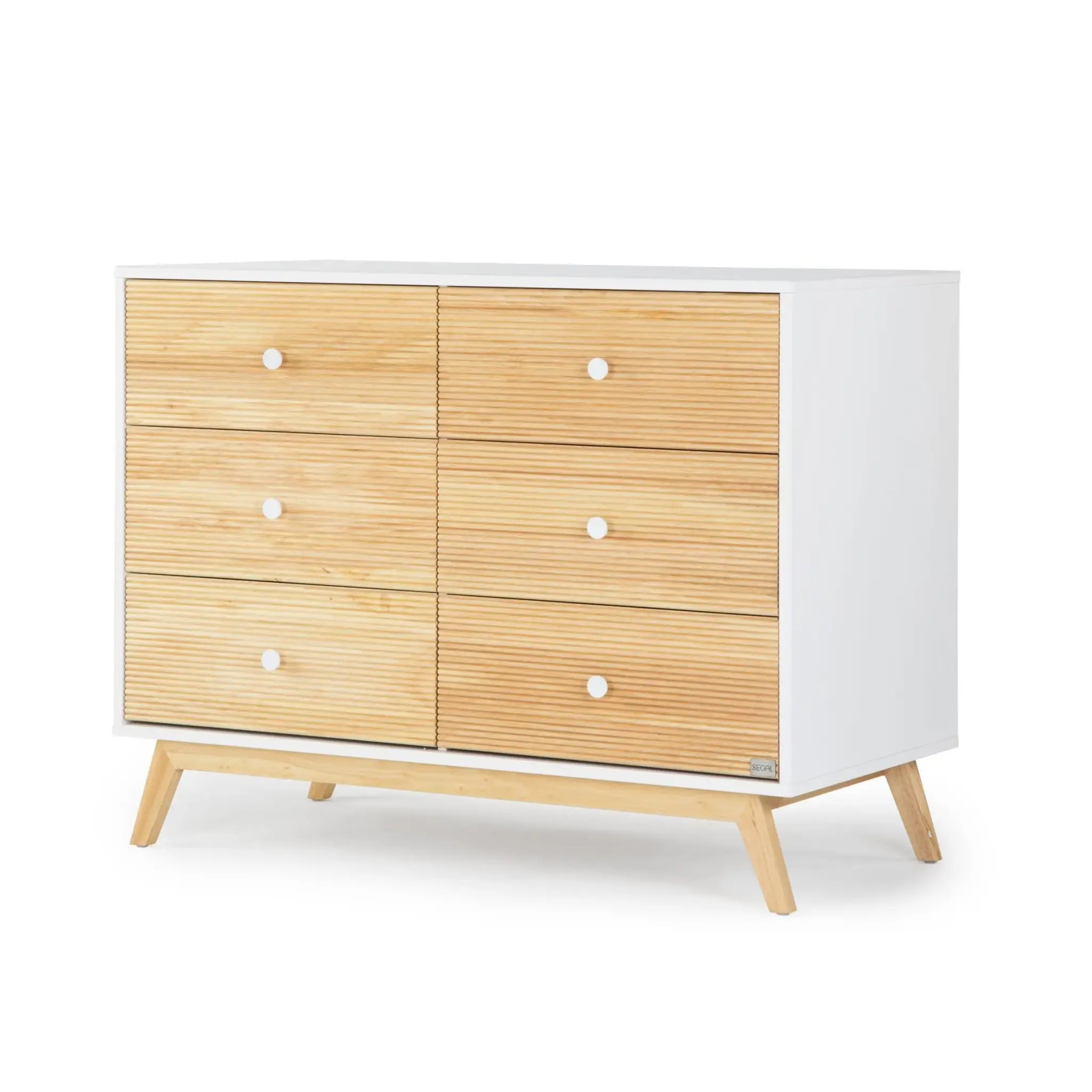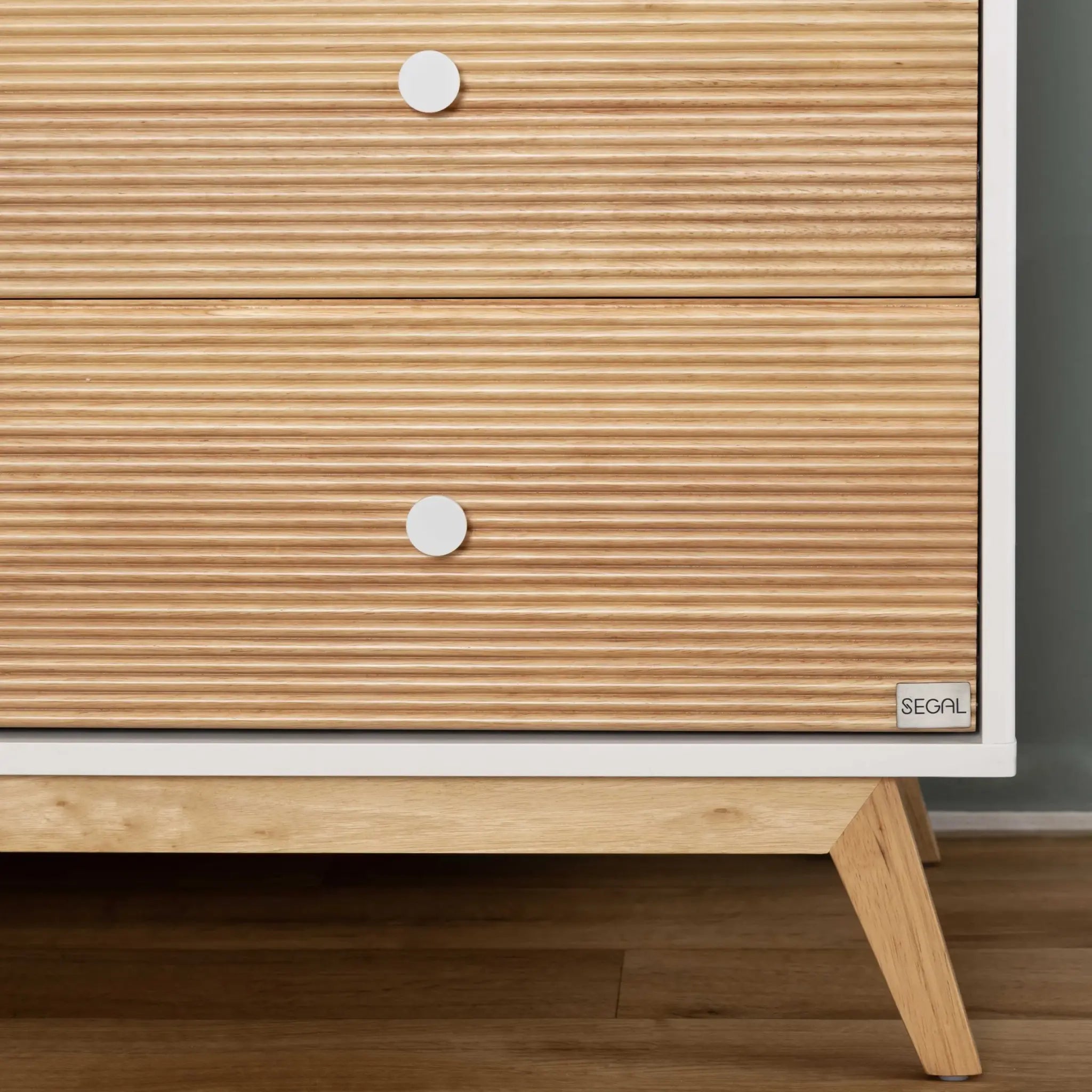 שידה זו עוצבה בהשראת אחד הטרנדים המובילים של השנה, ומשתלבת כחלק משמעותי בחלל, מה שהופך אותו למיוחד ומרשים. חזית השידה עשויה עץ מלא בגימור גלי עם טקסטורה מרהיבה, המעניקה לשידה אלגנטיות מודרנית ובולטת בחדר. השידה, ברוחב 120 ס"מ, כוללת 6 מגירות רחבות שמספקות מקום רב לאחסון. היא עשויה MDF מלא, איכותי ועמיד, שמבטיח שימוש ארוך טווח.