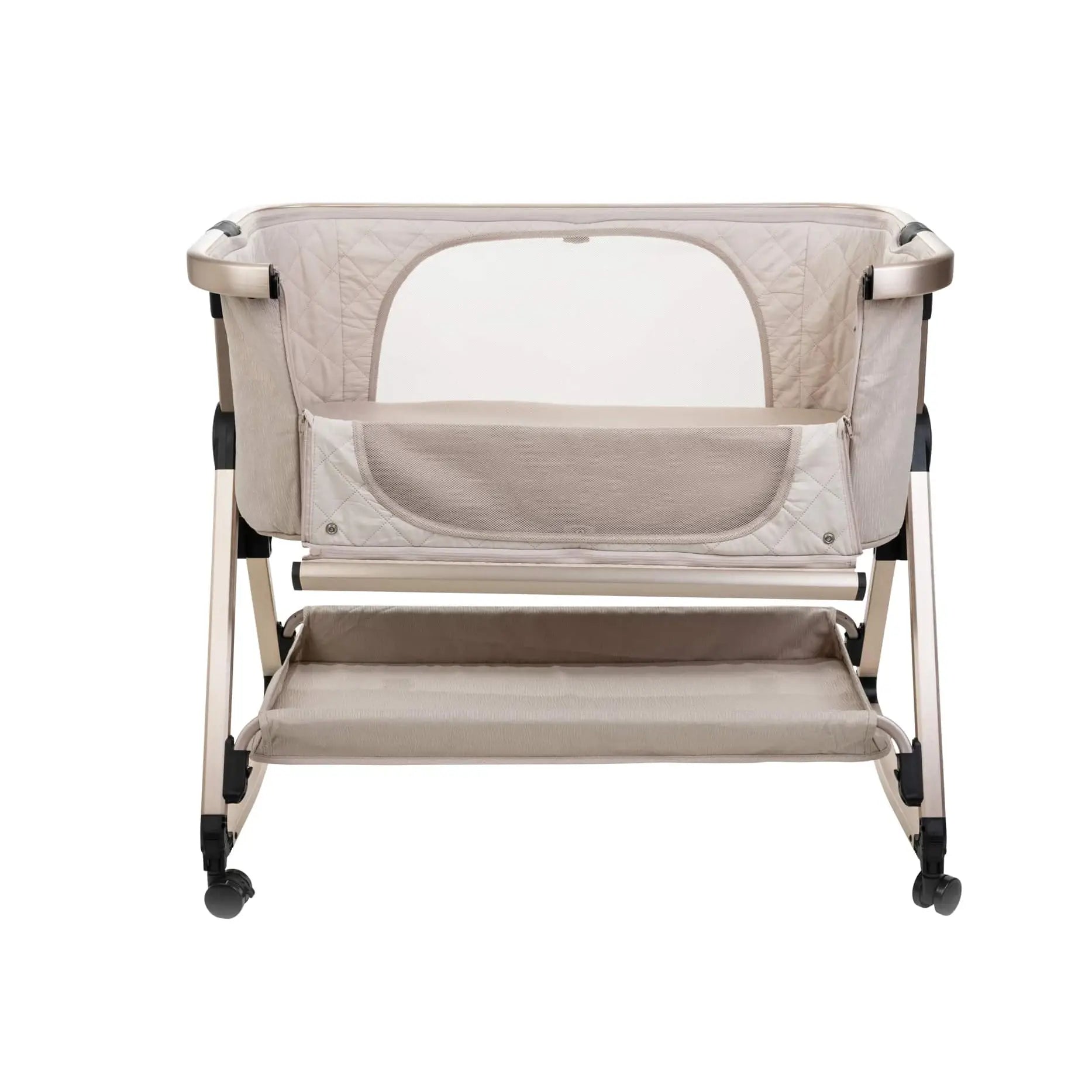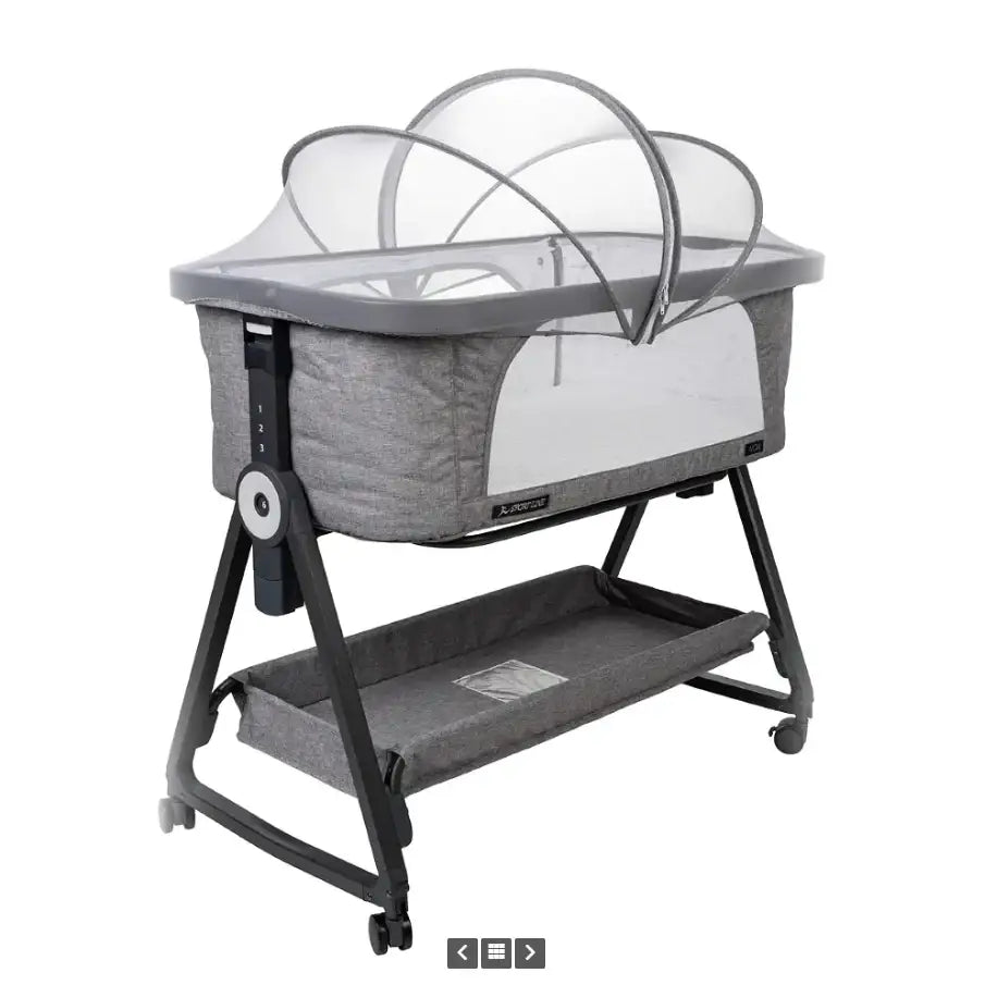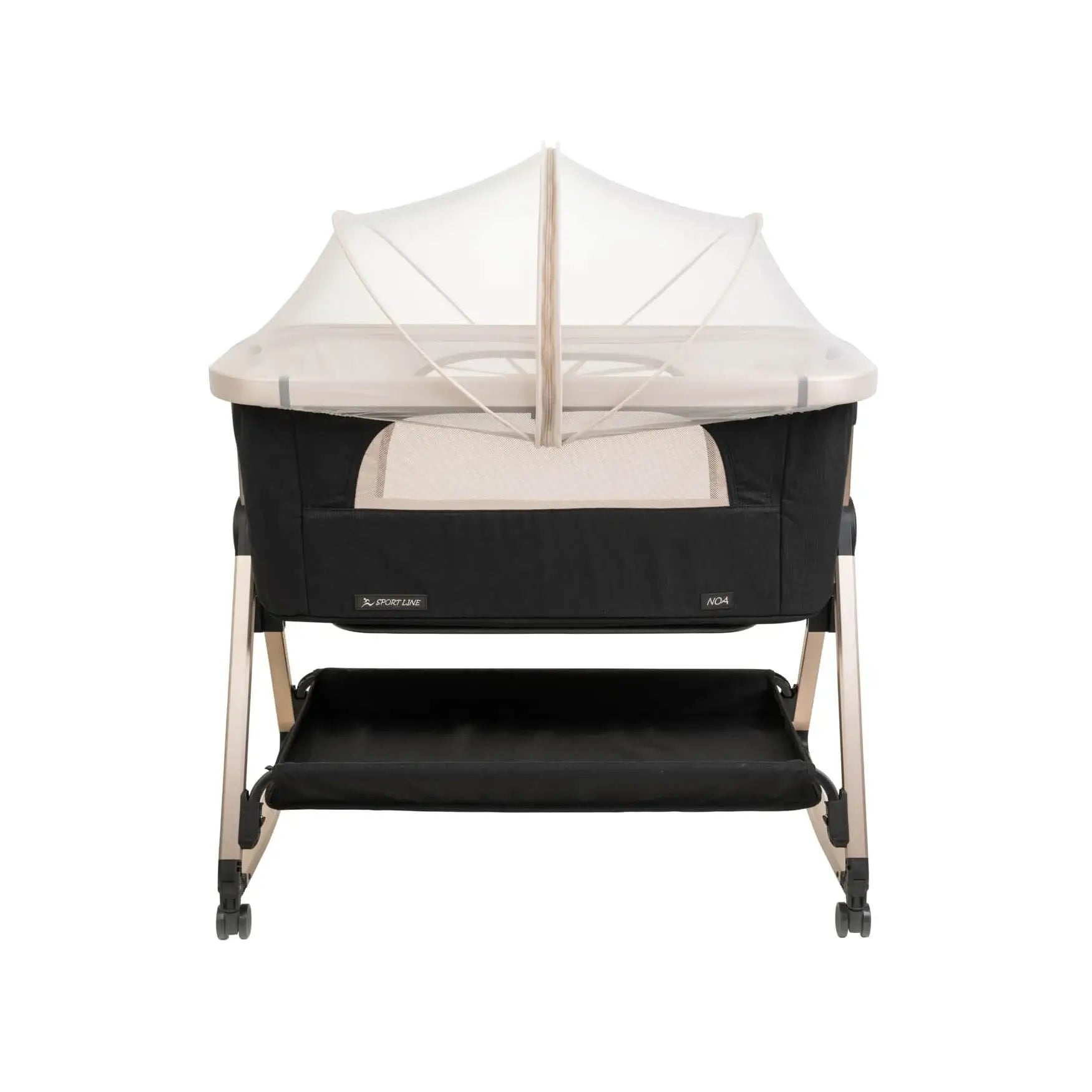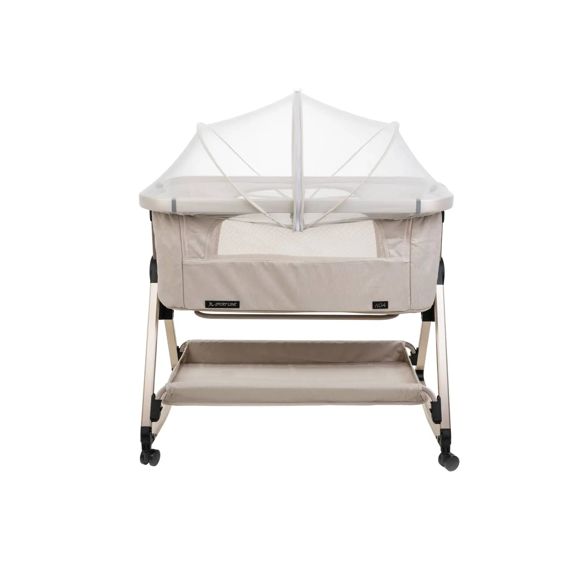 לעריסה גלגלים עם נעילה, מזרן עבה במיוחד, כילה מפוארת ומשטח אחסנה גדול במיוחד.