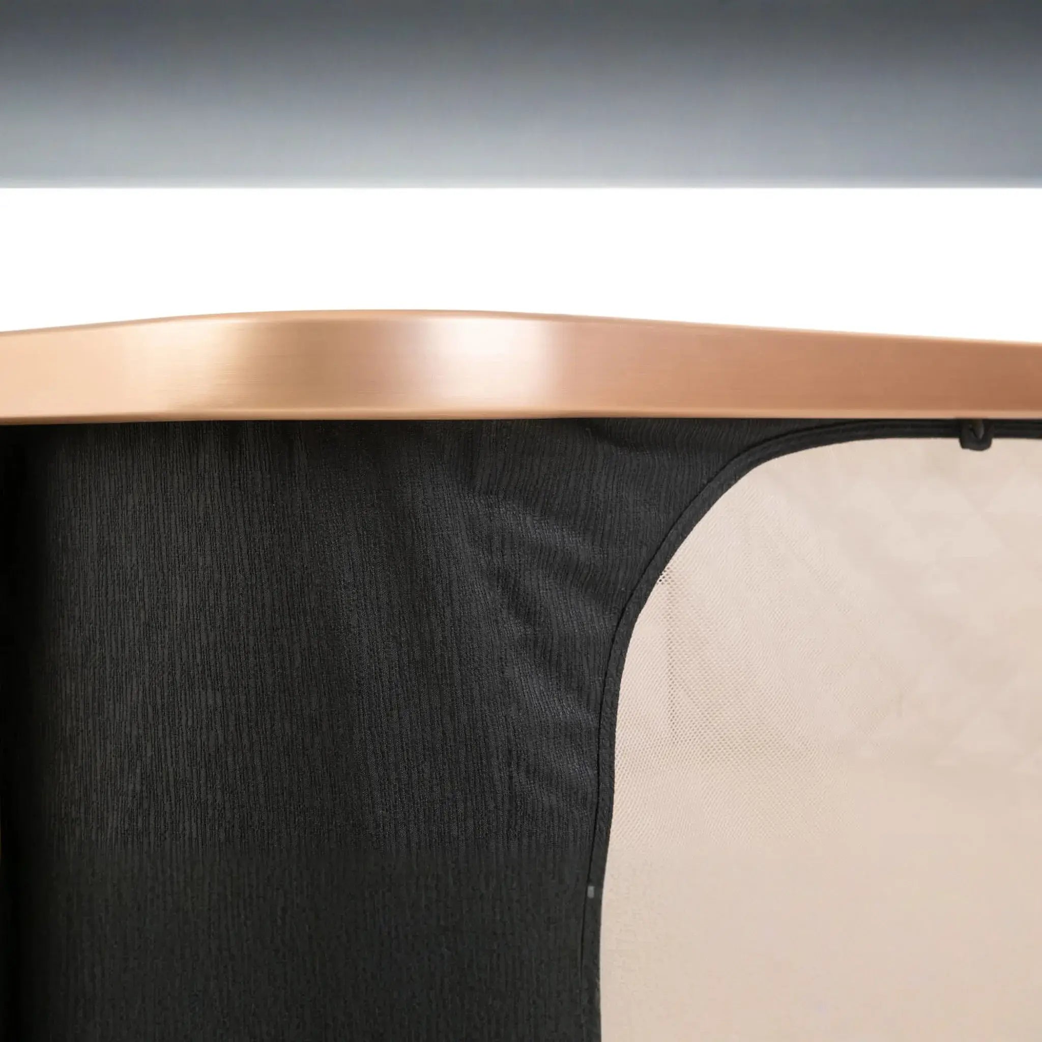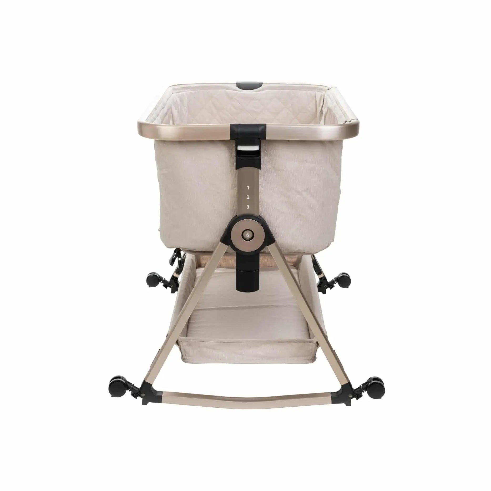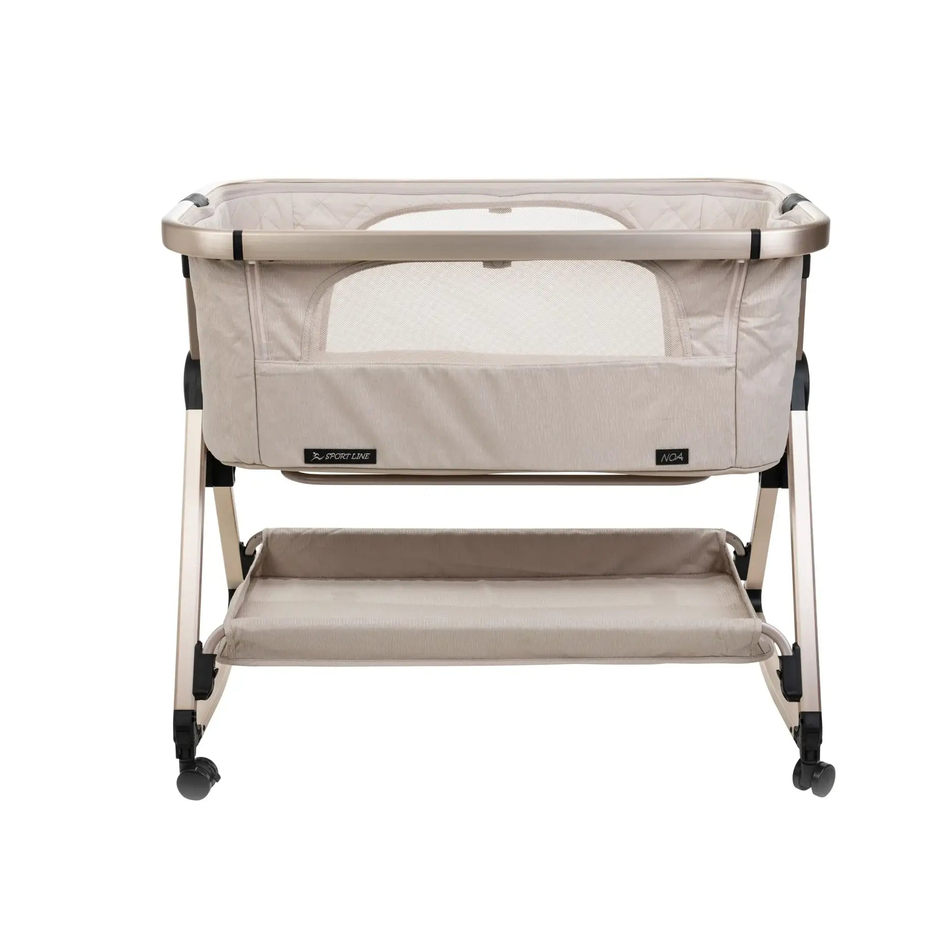 לעריסה גלגלים עם נעילה, מזרן עבה במיוחד, כילה מפוארת ומשטח אחסנה גדול במיוחד.