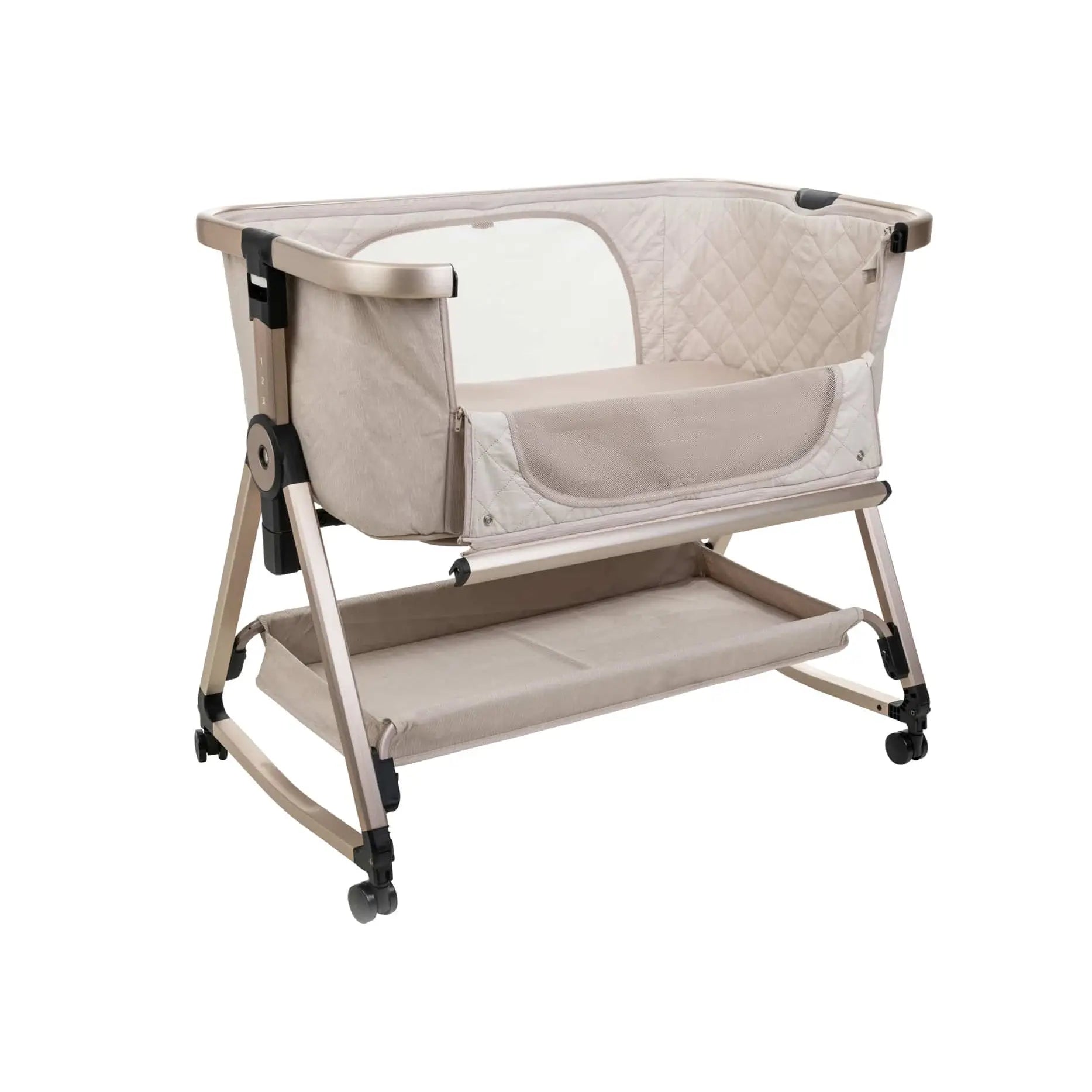 עריסה מעוצבת במגוון עיצובים חדשים נצמדת למיטת הורים.