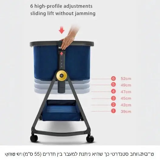 לעריסה 6 מצבי גובה הניתנים לשינוי ע"פ צורך שימוש והתאמה לגובה מיטת ההורים.