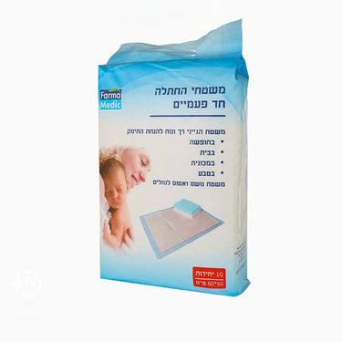 משטחי החתלה חד פעמיים רכים נוחים ואיכותיים בתוספת חומר SAP לוכד נוזלים ושכבה אטומה למניעת נזילות 10יח במארז מידה 60x60 ס"מ.