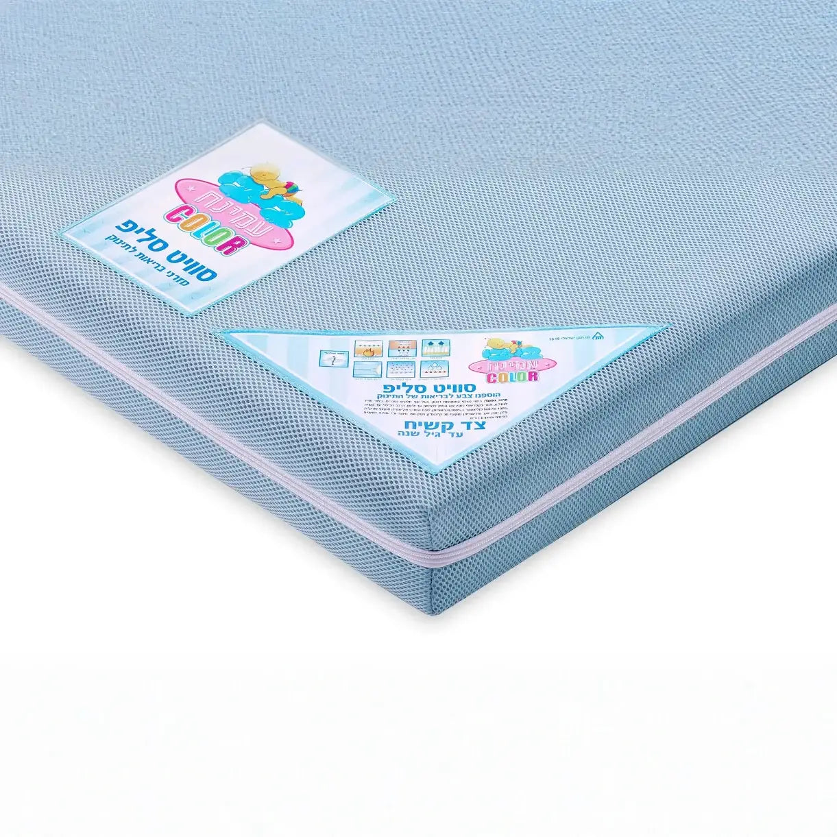 צד קשיח לתינוק עד גיל שנה – עשוי מחומר פלסטי מיוחד אשר מונע מהתינוק לשקוע במזרן עם בד נושם ובלתי חדיר לנוזלים.