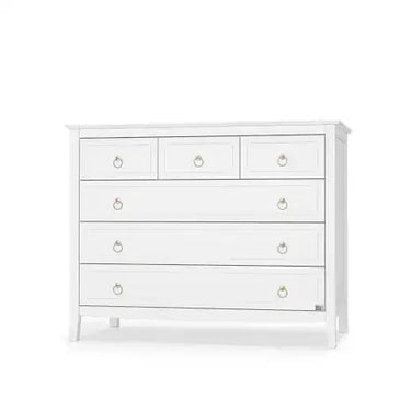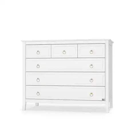 השידה במראה רומנטי ומעודכן, מציעה שילוב מושלם בין קלאסיות לעכשוויות. עם פרטי חריטה מיוחדים בחזית ובדפנות, היא מצליחה להעניק תחושת חמימות ונועם לחדר. הגימור הצבע בתנור מוסיף ברק ועמידות, בעוד שהידיות בצבע זהב מוסיפות נופך יוקרתי ומרשים. שידה זו לא רק פריט פונקציונלי, אלא גם אלמנט עיצובי שמביא עימו סטייל וייחודיות לכל חדר.