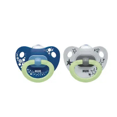 זוג מוצצים הפי נייטס זוהרים בחושך כחול 6-18 חודשים כחול NUK