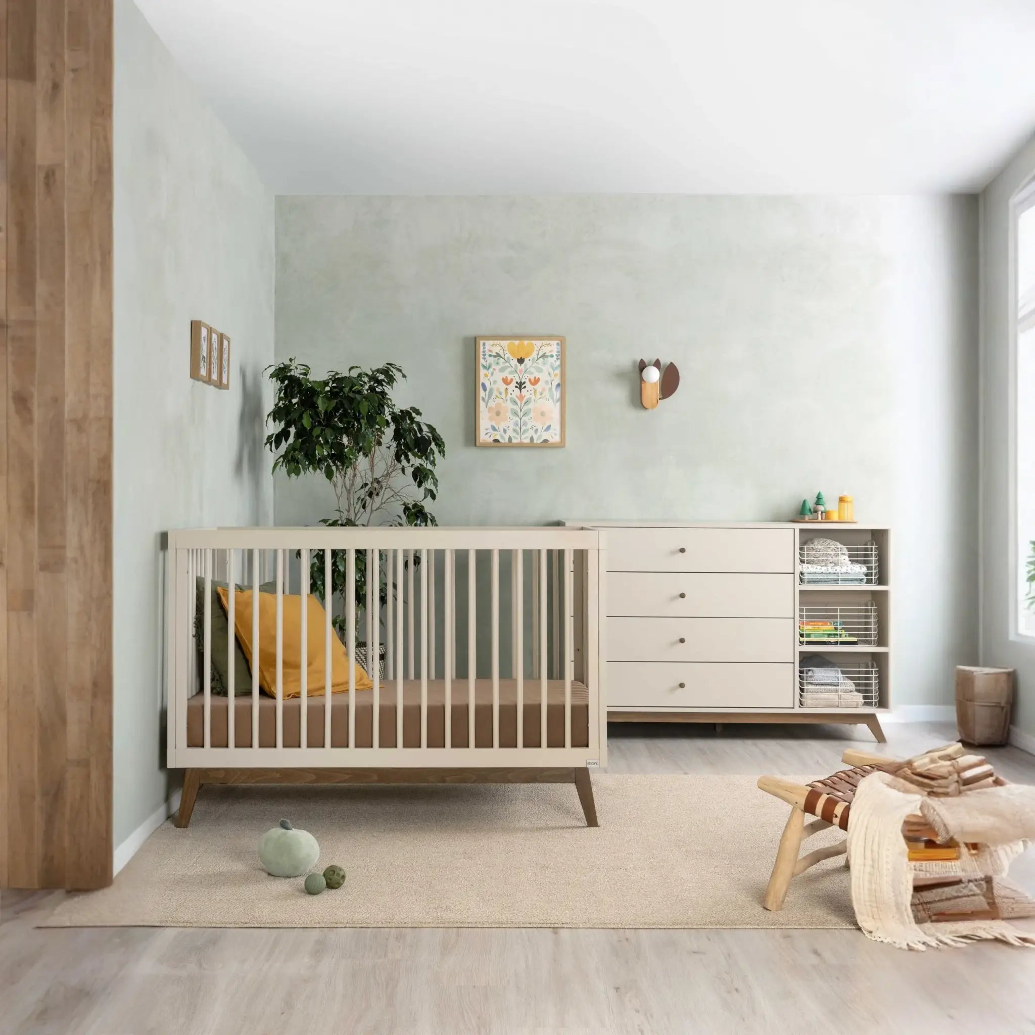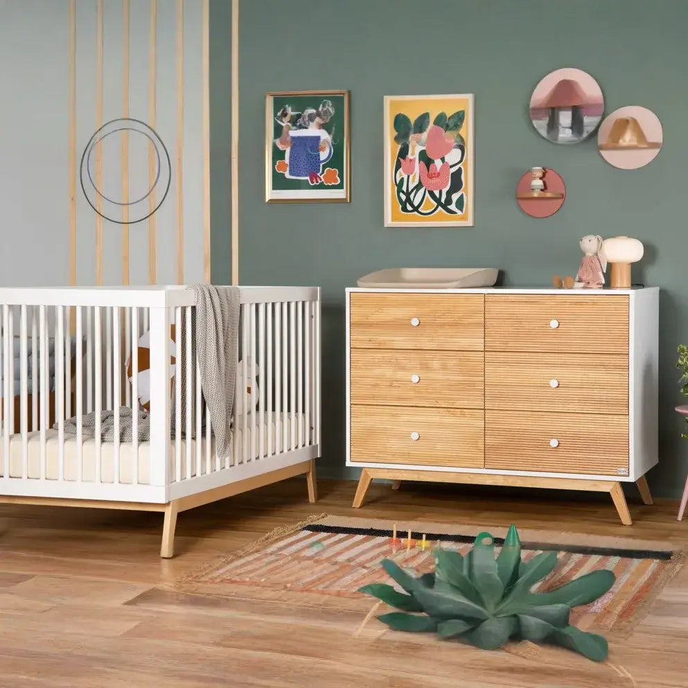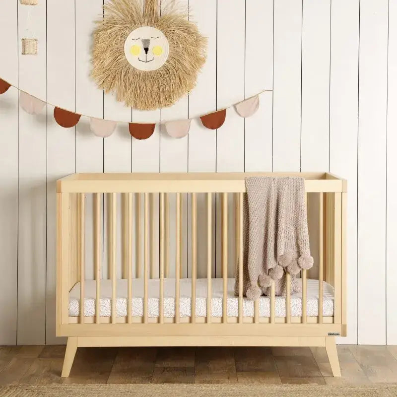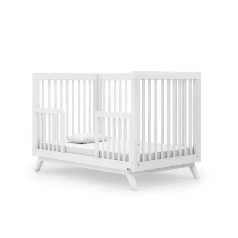 מיטת תינוק גדולה יותר ומעוצבת בקווים נקיים וישרים, עשויה מעץ בוק מלא, עמיד וחזק, עם אישור תקן ואישור בינלאומי של Greenguard. המיטה אינה כוללת מעקה טודלר ומזרן, אותם יש לרכוש בנפרד.