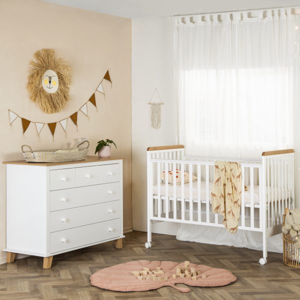 עוצבה מ MDF מלא איכותי וחזק - כולל פנים מגירות, עם גימור אולטרא גלוס. חלוקת המגירות נועדה לייצר סדר וארגון פונקציונאלי למוצרי ובגדי התינוק, כך שיהיה לכם נוח לחתל ולהחליף בגדים על השידה. כדי לשמור על בטיחות התינוק שלכם הקפדנו על חומרים איכותיים ועמידים לאורך שנים.