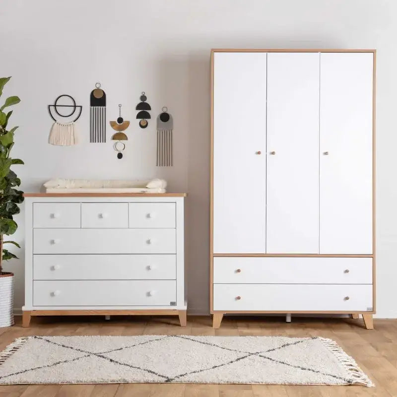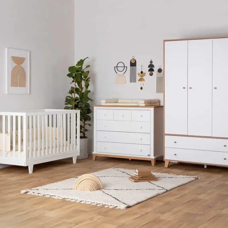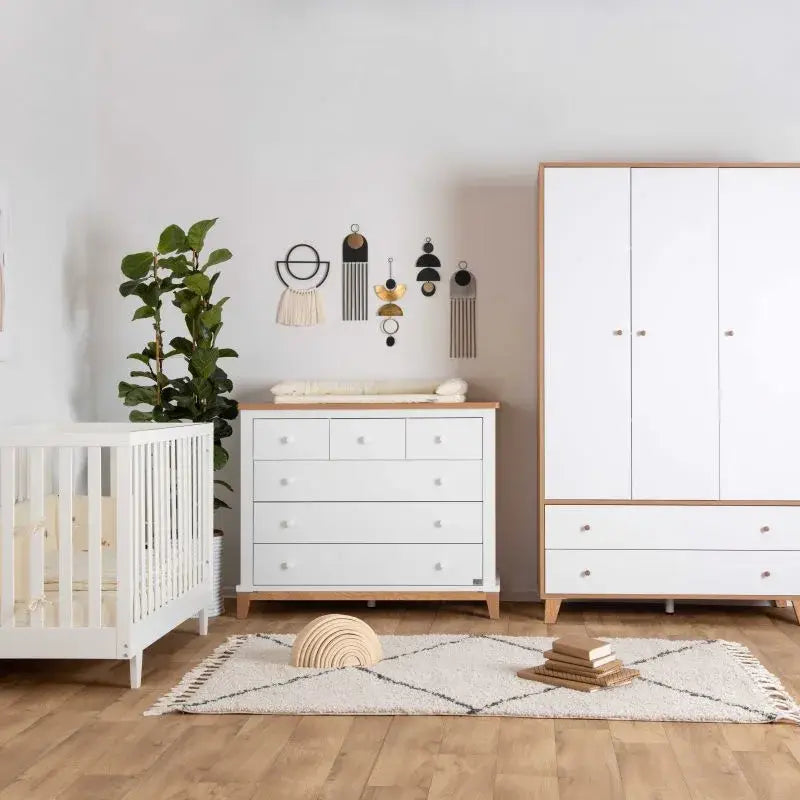 חדר זה מצליח לשלב מספר סגנונות עיצוביים ויוצר הרמוניה מושלמת שמתאימה לכל חלל. השילוב של שלושת הפריטים – מיטה, שידה וארון – יוצרים עיצוב חמים ומלא אופי, שמתאים לכל צבעוניות שתבחרו, ומאפשר גמישות אקלקטית. אחד המאפיינים הבולטים של החדר הוא יצירת הרמוניה משילוב פריטים שונים, שכל אחד מהם תורם לאופי הכללי ומחמיא לאחרים. החדר כולל את מיטת קיימברידג' עם מעקה טודלר כחלק מהערכת המיטה, ונותן בסיס מצוין לשילוב עם סגנונות עיצוב מגוונים.